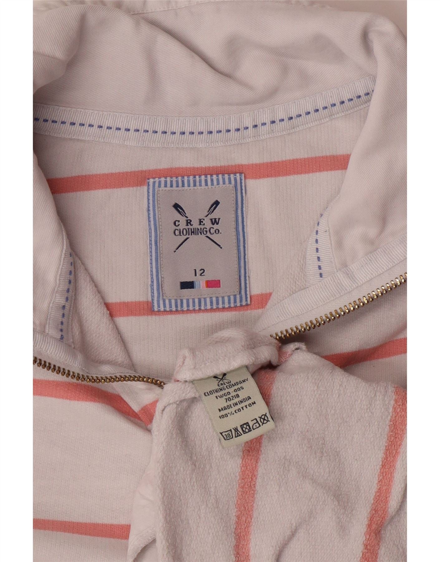 CREW CLOTHING Womens Zip Neck Sweatshirt Jumper UK 12 Medium White Striped