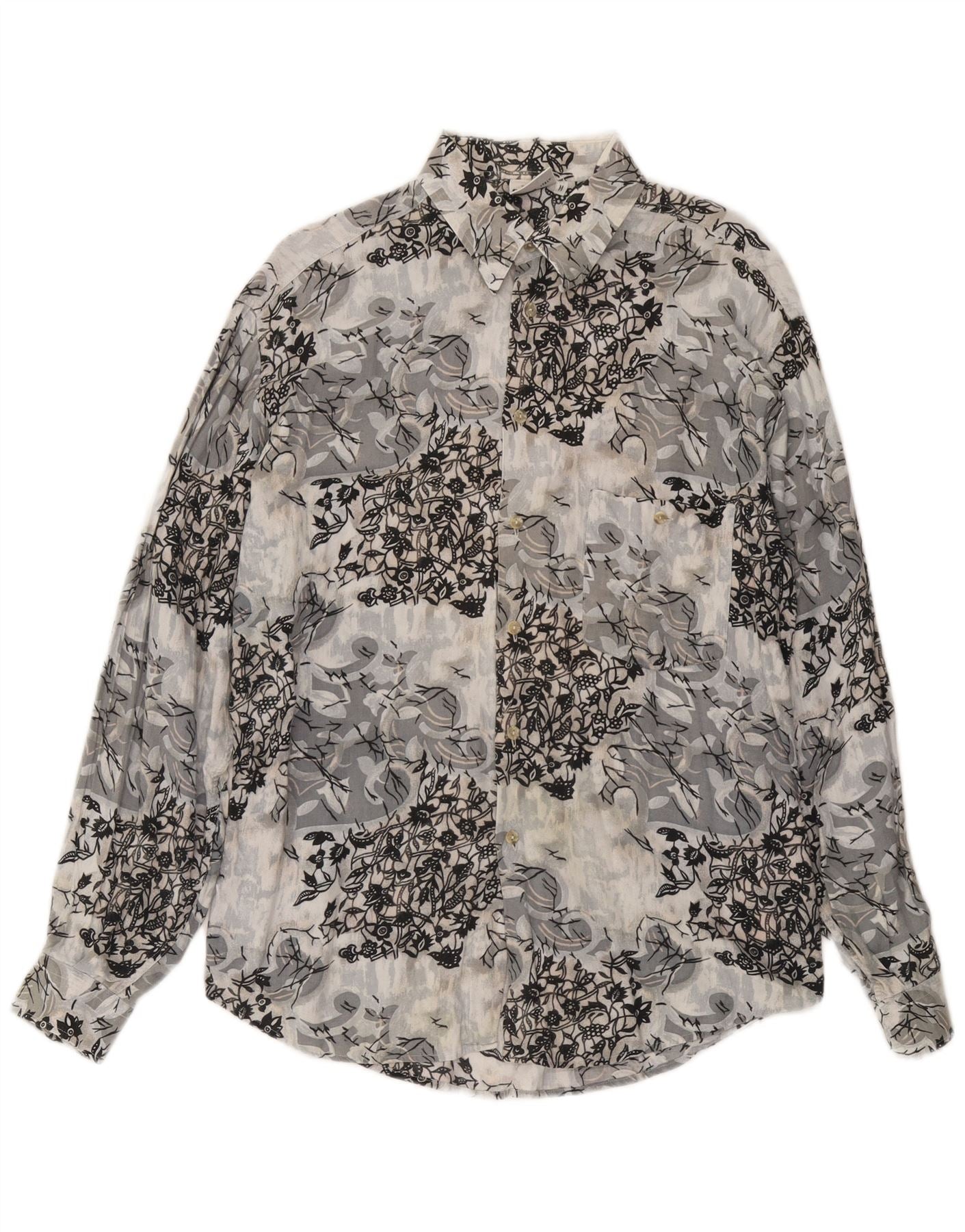 CRIVER Mens Shirt Medium Grey Floral Viscose