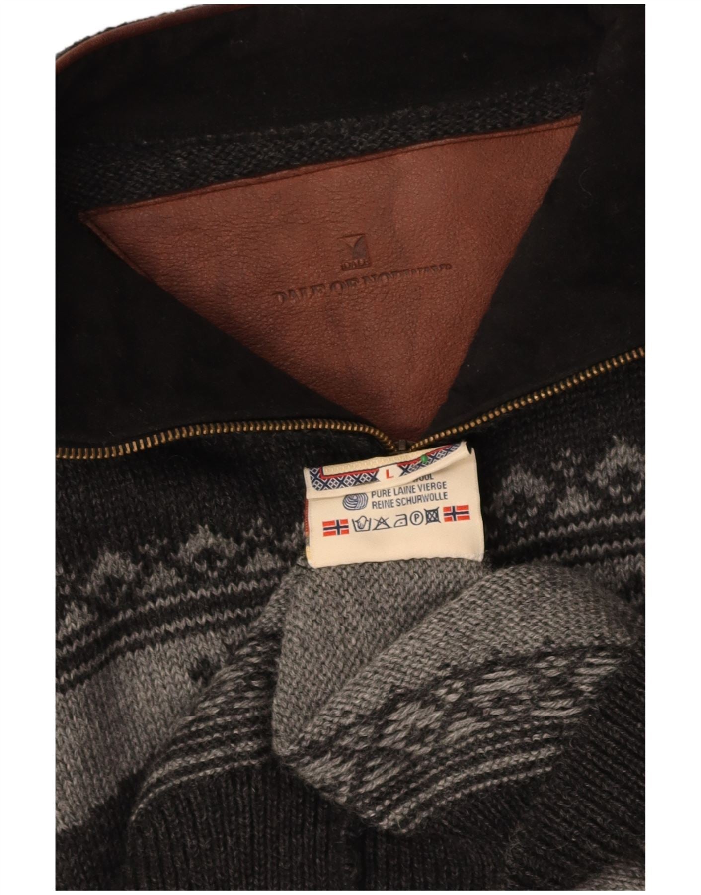 DALE OF NORWAY Mens Zip Neck Jumper Sweater Large Grey Fair Isle Wool