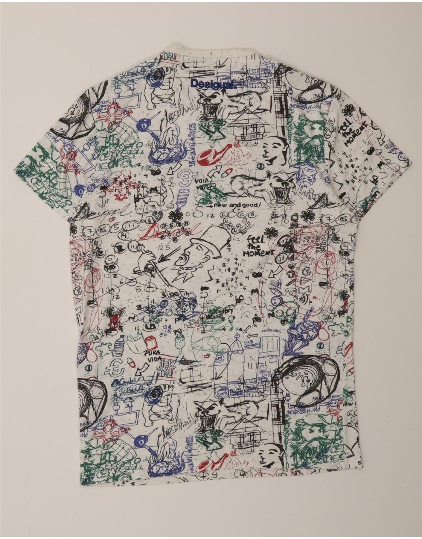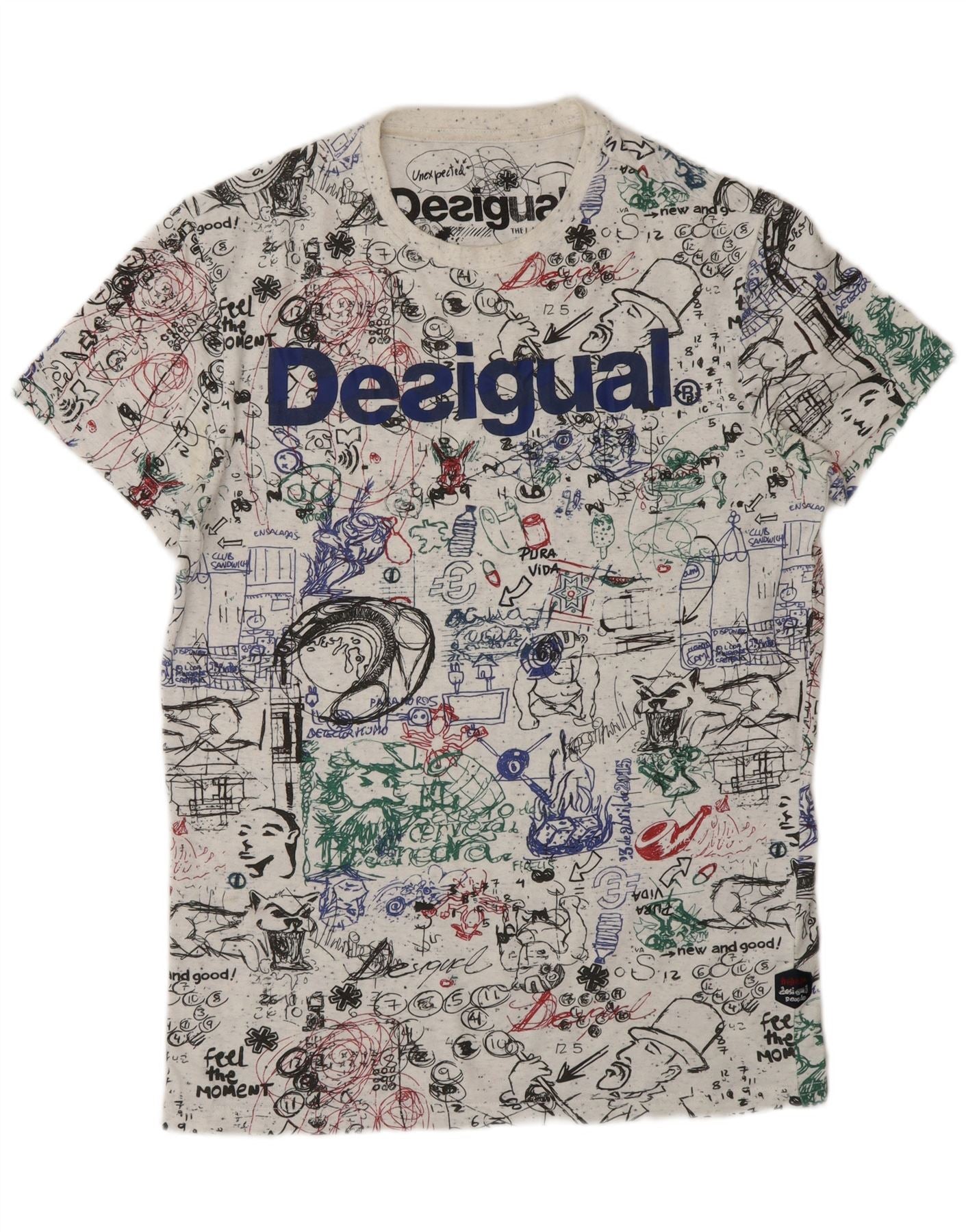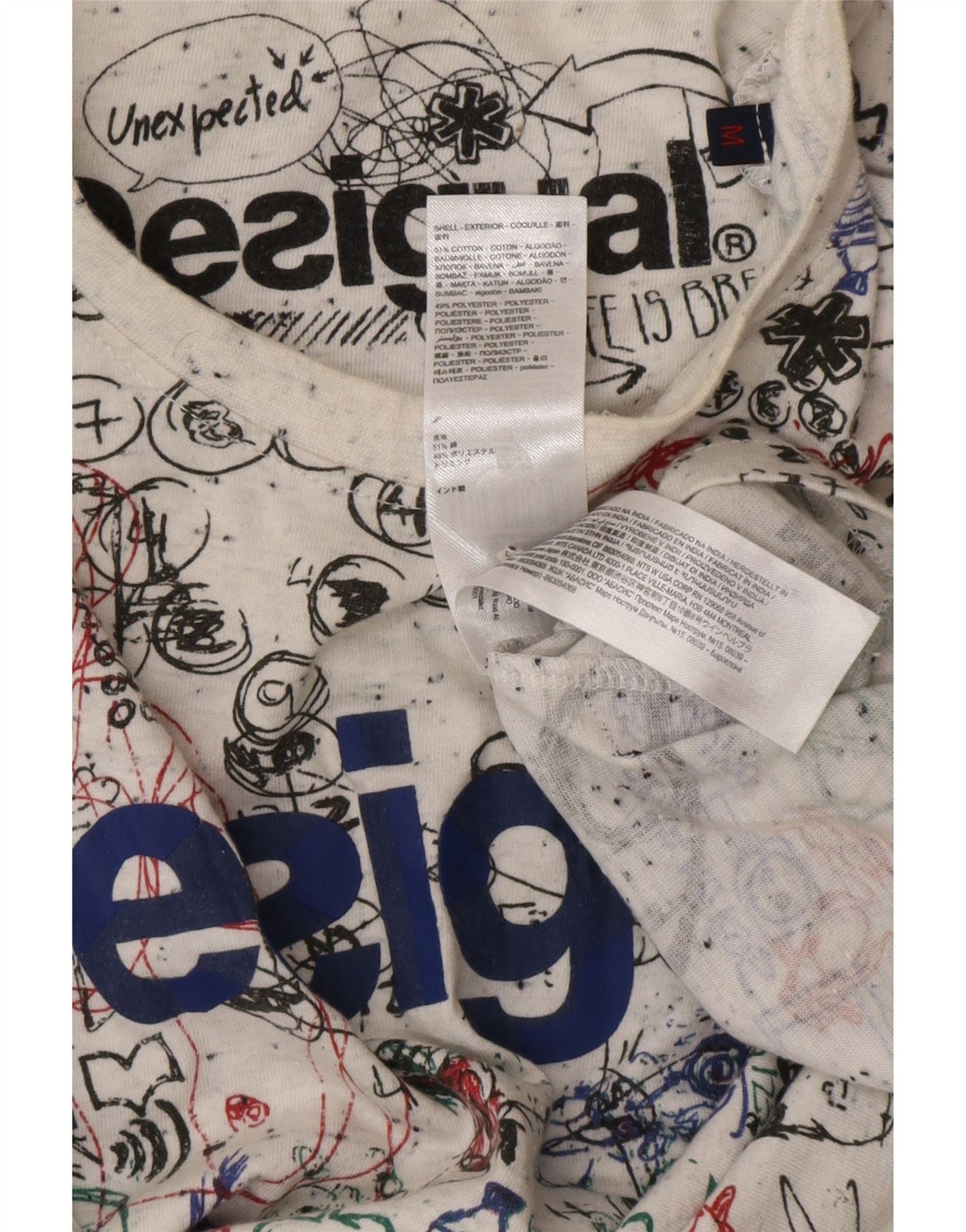 DESIGUAL Mens Abstract Pattern Graphic T-Shirt Top Medium White Cotton