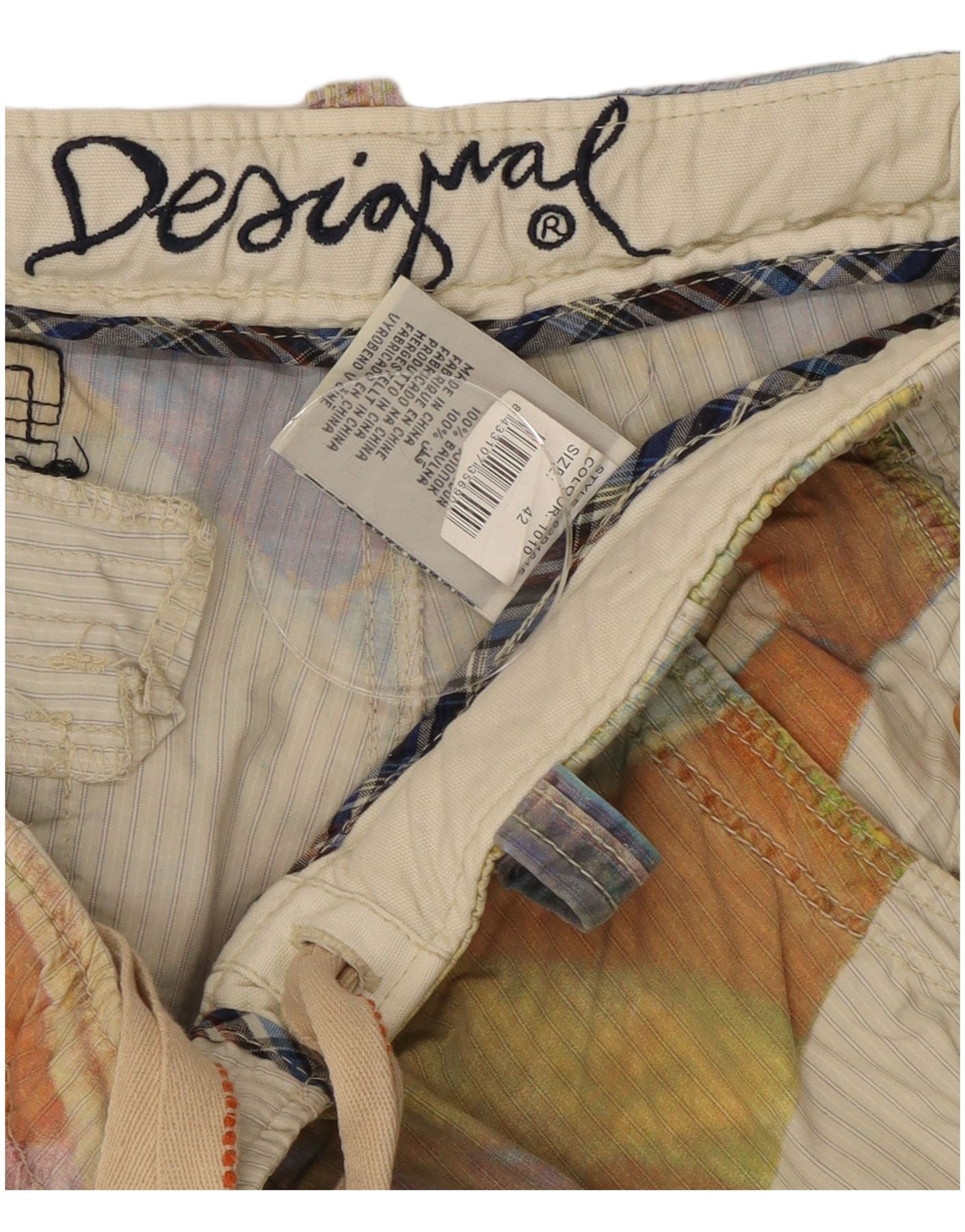 Desigual Mens Graphic Cargo Shorts EU 42 Medium W34 Beige Cotton