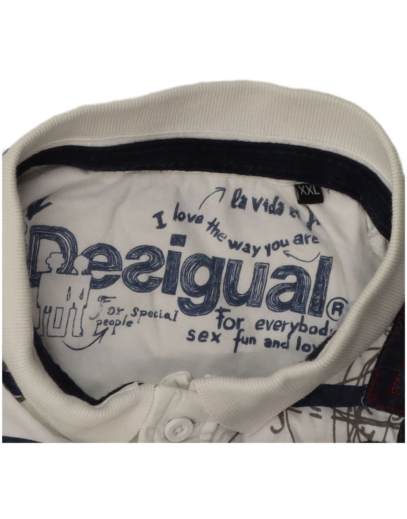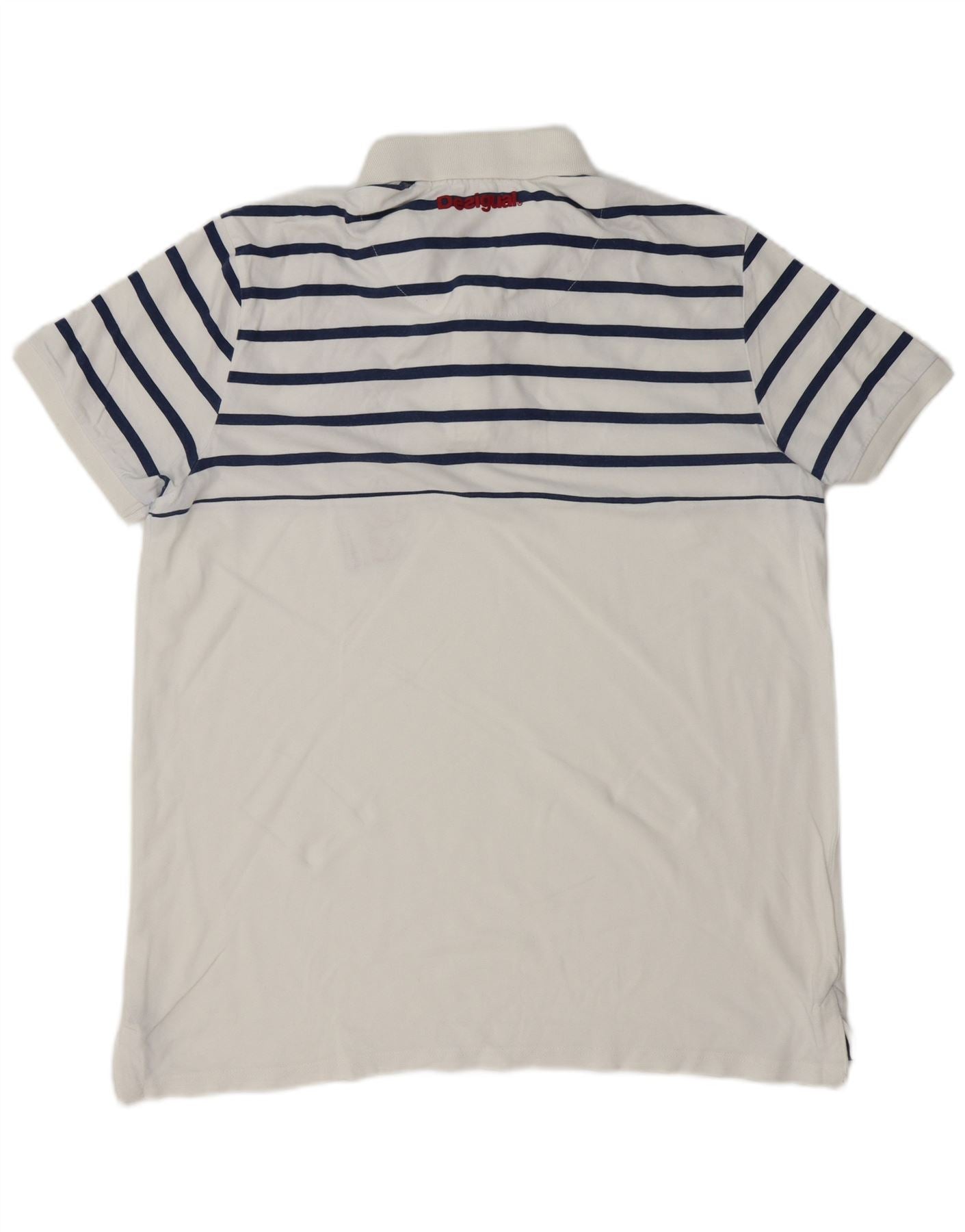 DESIGUAL Mens Graphic Polo Shirt 2XL White Striped