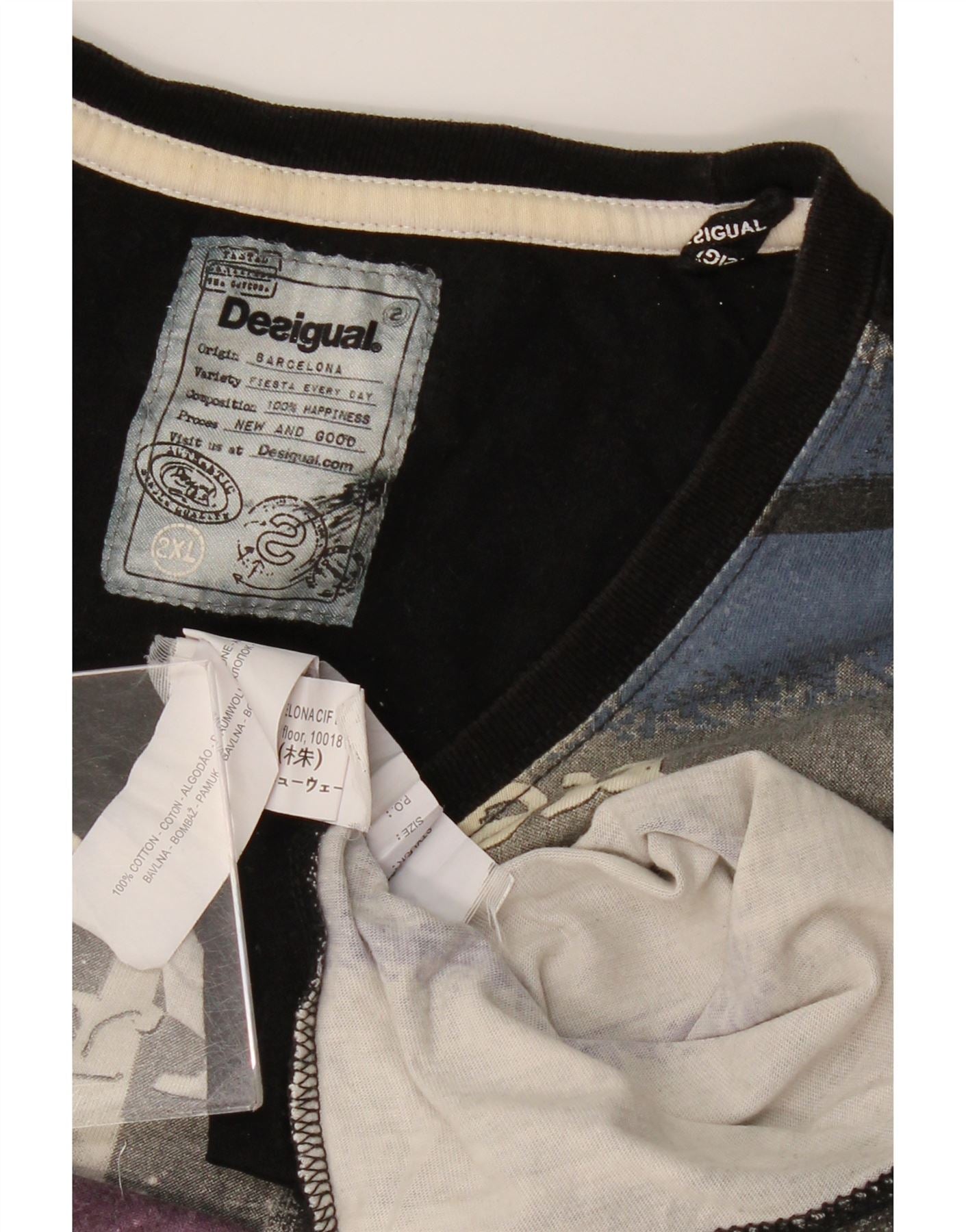 DESIGUAL Mens Graphic T-Shirt Top 2XL Grey Colourblock Cotton