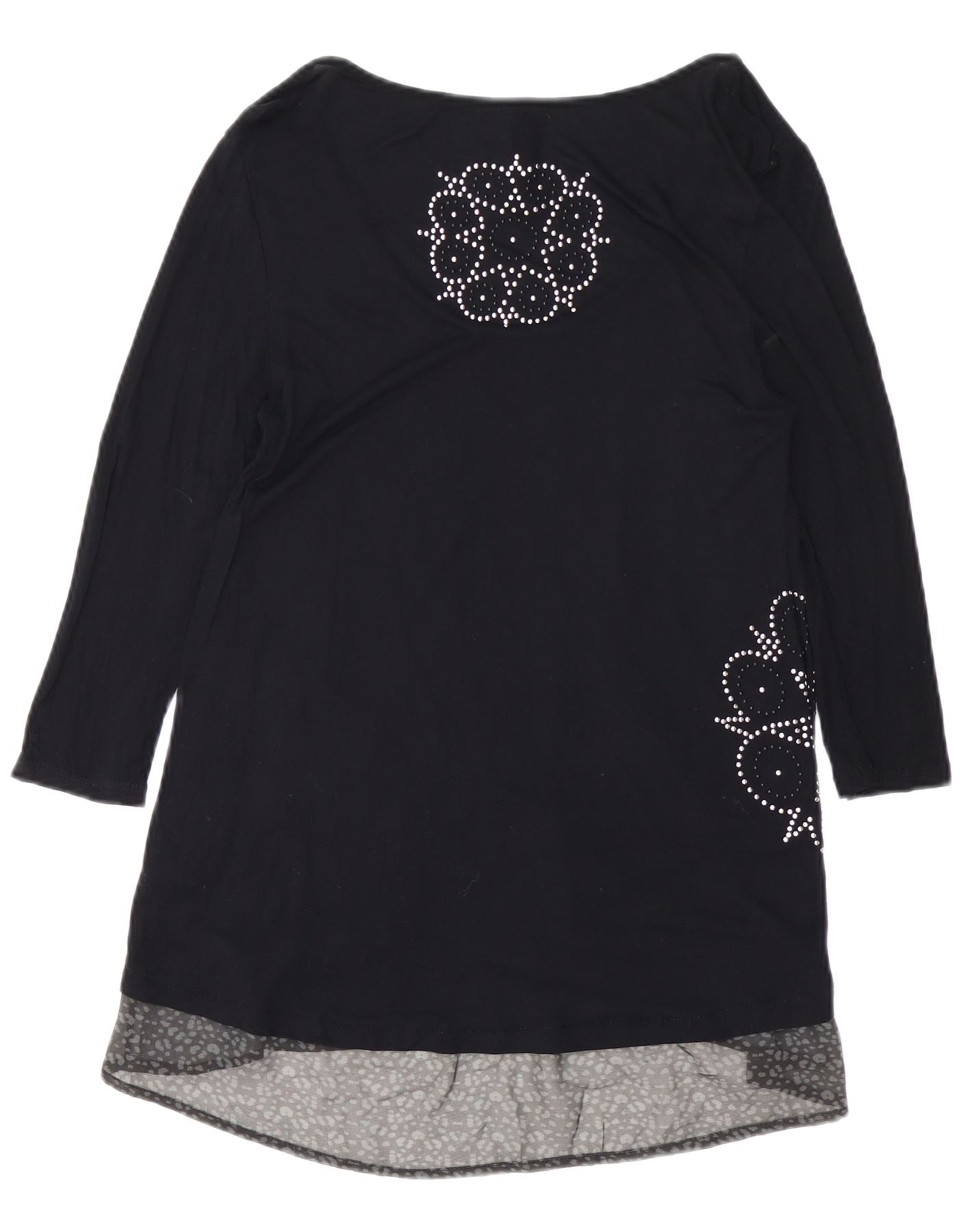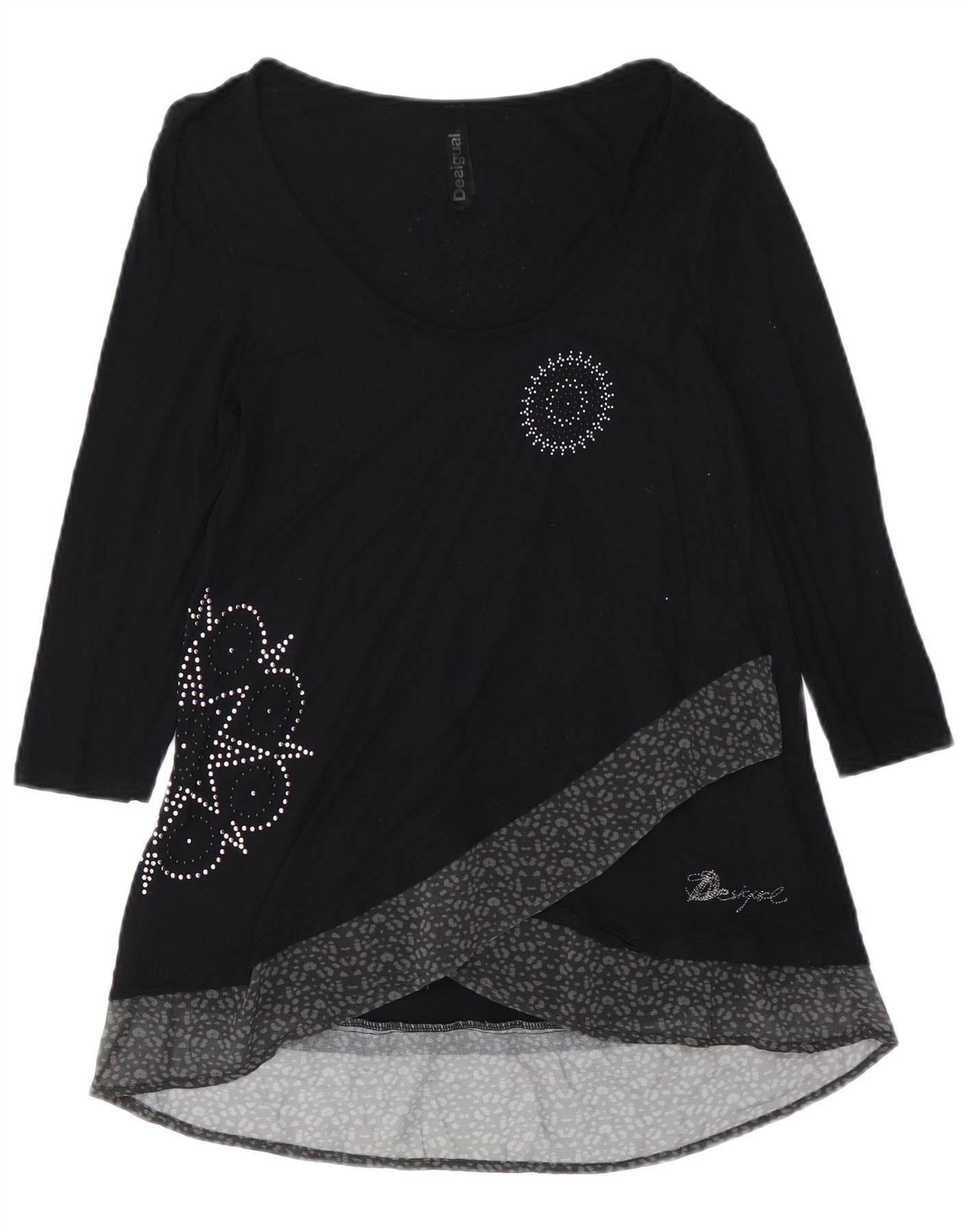 DESIGUAL Womens 3/4 Sleeve Graphic A-Line Dress UK 12 Medium Black Viscose