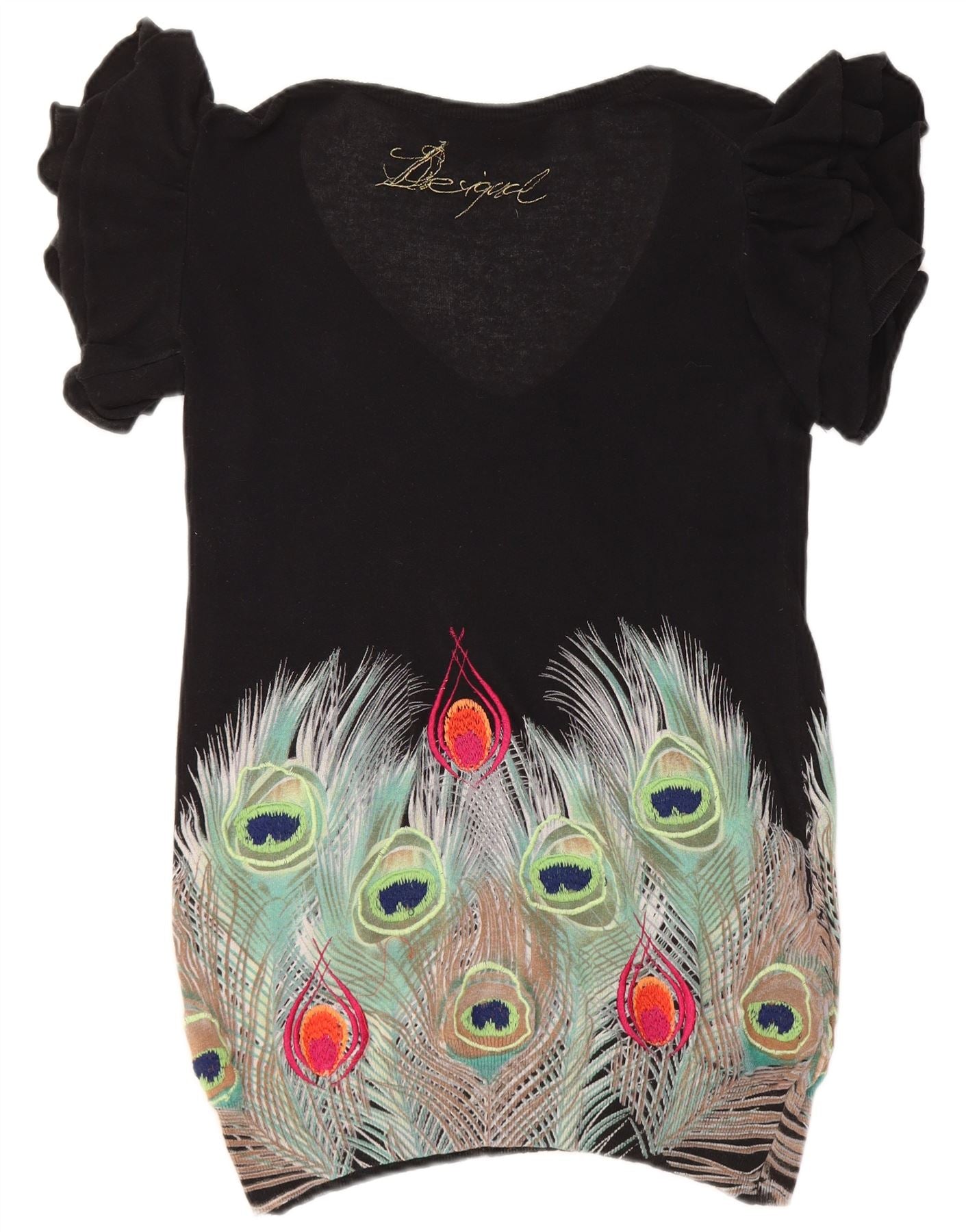 DESIGUAL Womens Abstract Pattern V-Neck Jumper Sweater UK 10 Small Black