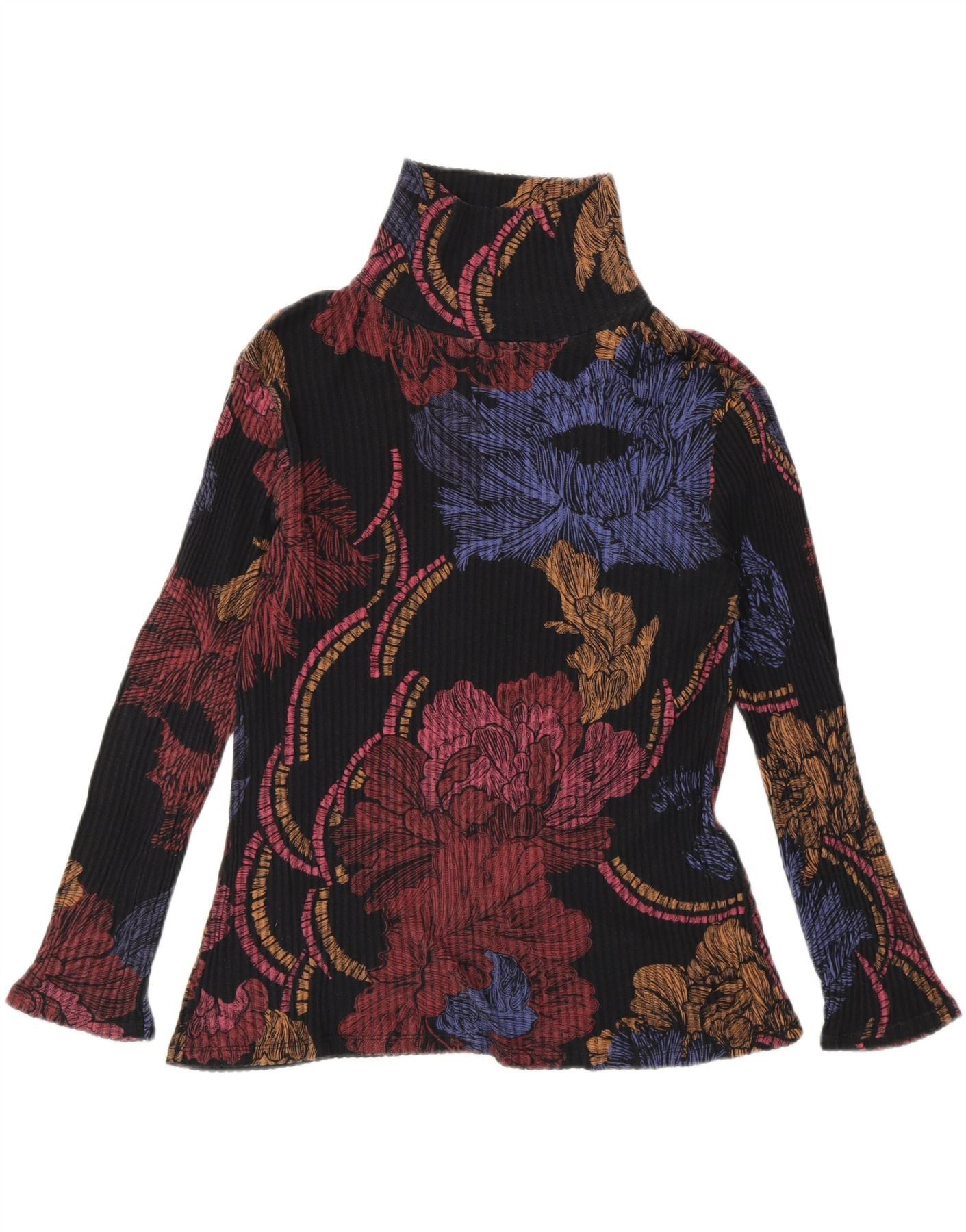 DESIGUAL Womens Blouse Top UK 20 2XL Black Floral Cotton
