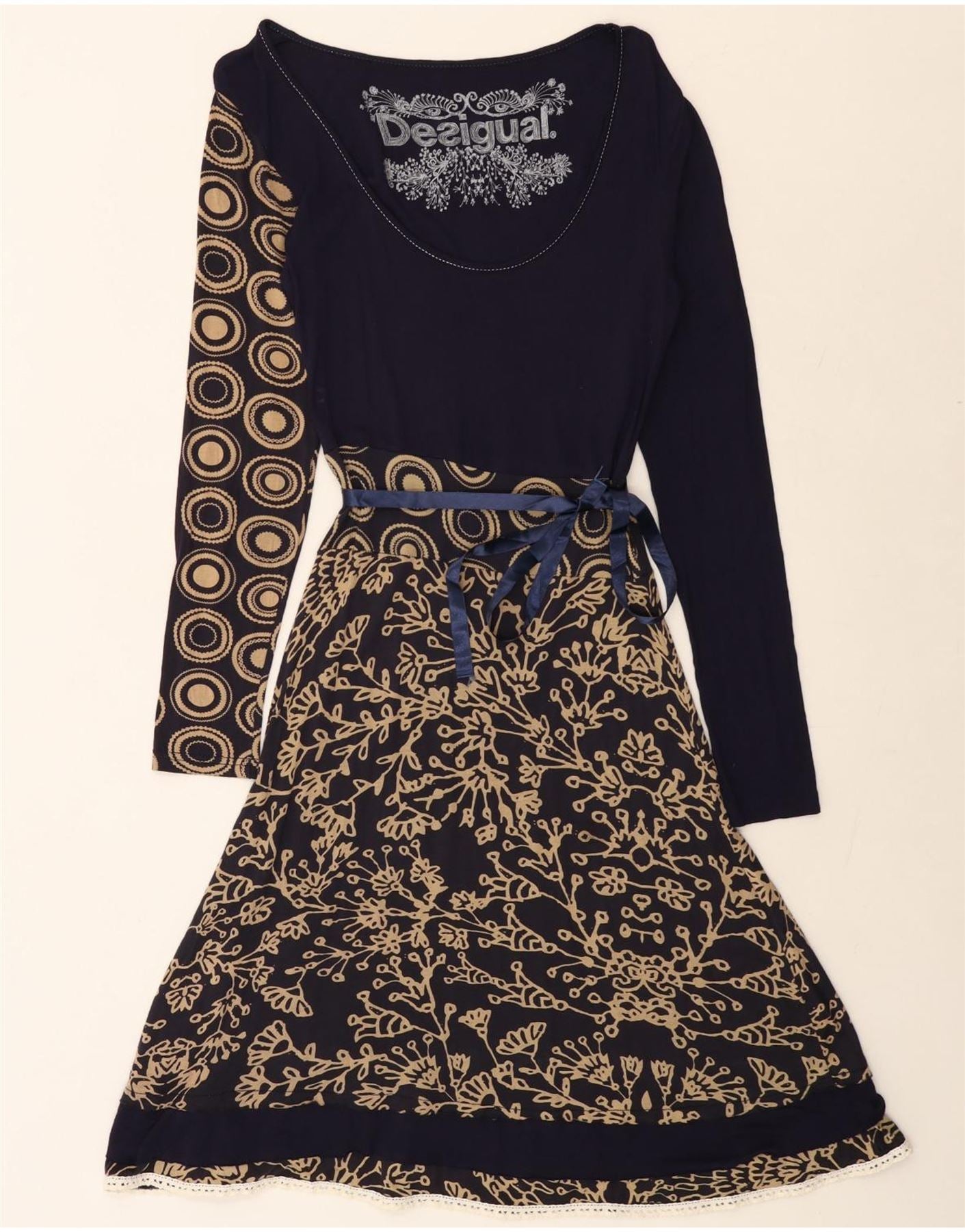 DESIGUAL Womens Graphic A-Line Dress UK 12 Medium Navy Blue Floral