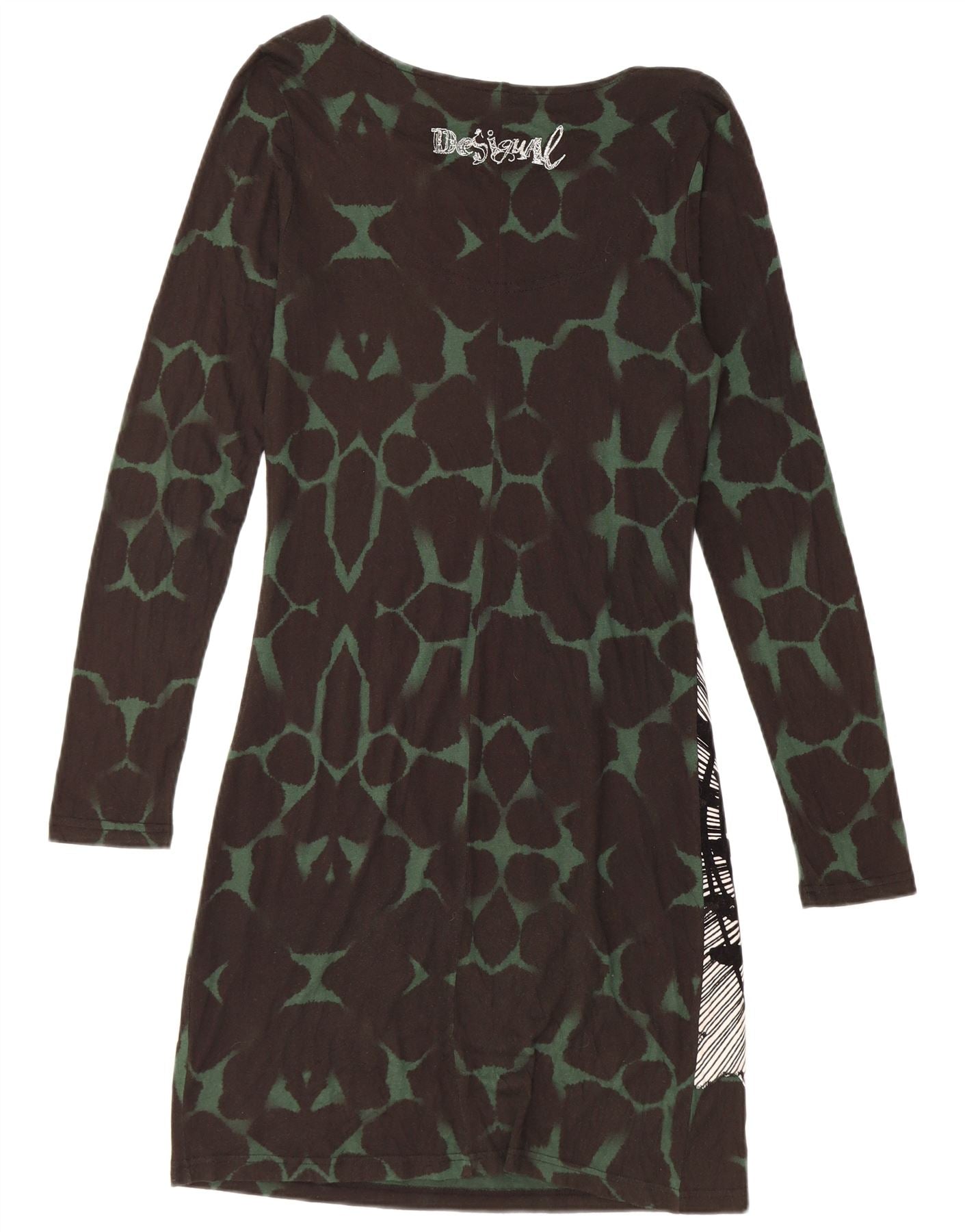 DESIGUAL Womens Graphic Long Sleeve Sheath Dress UK 12 Medium Black Floral