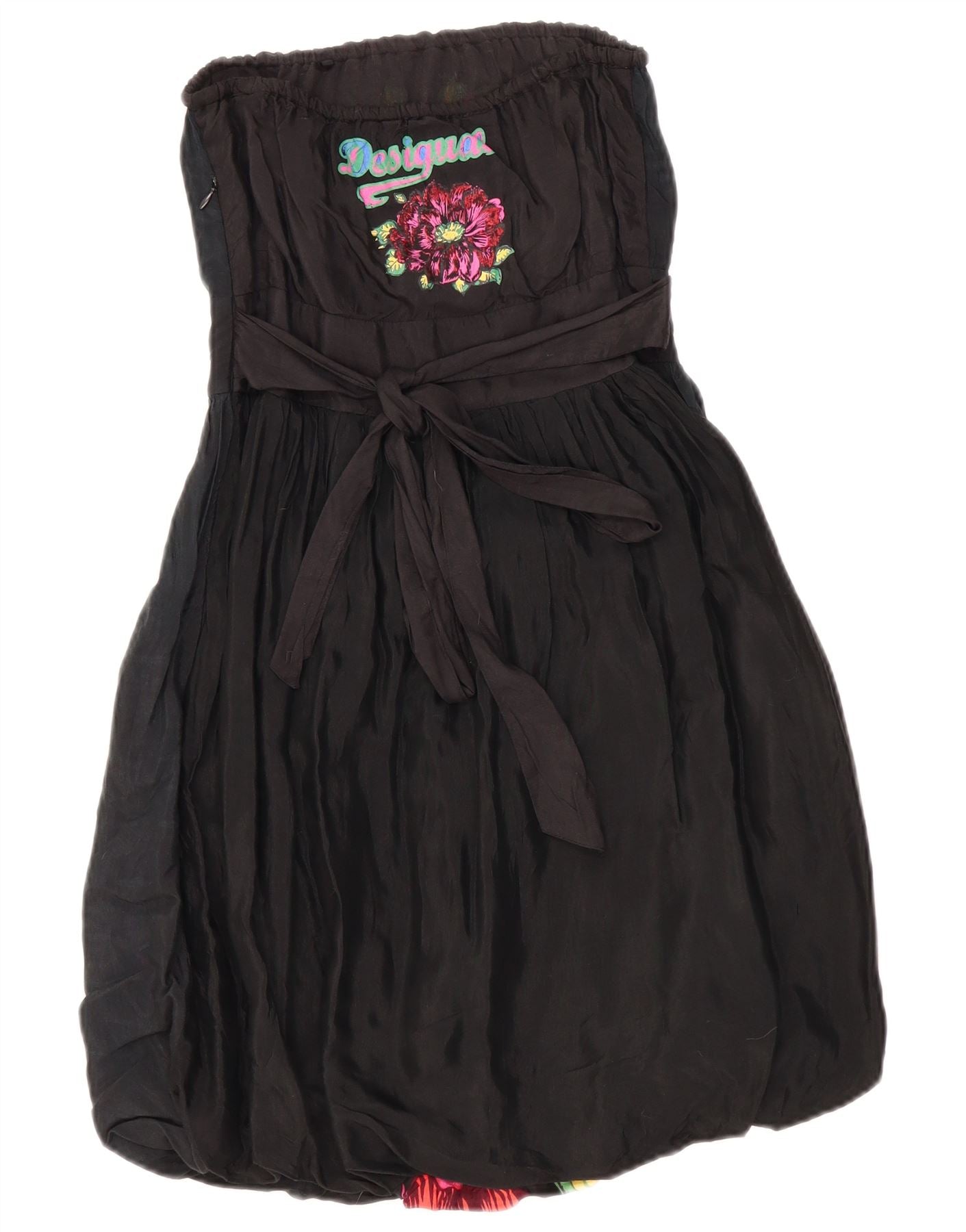 DESIGUAL Womens Graphic Strapless Bubble Dress EU 38 Medium Black Floral