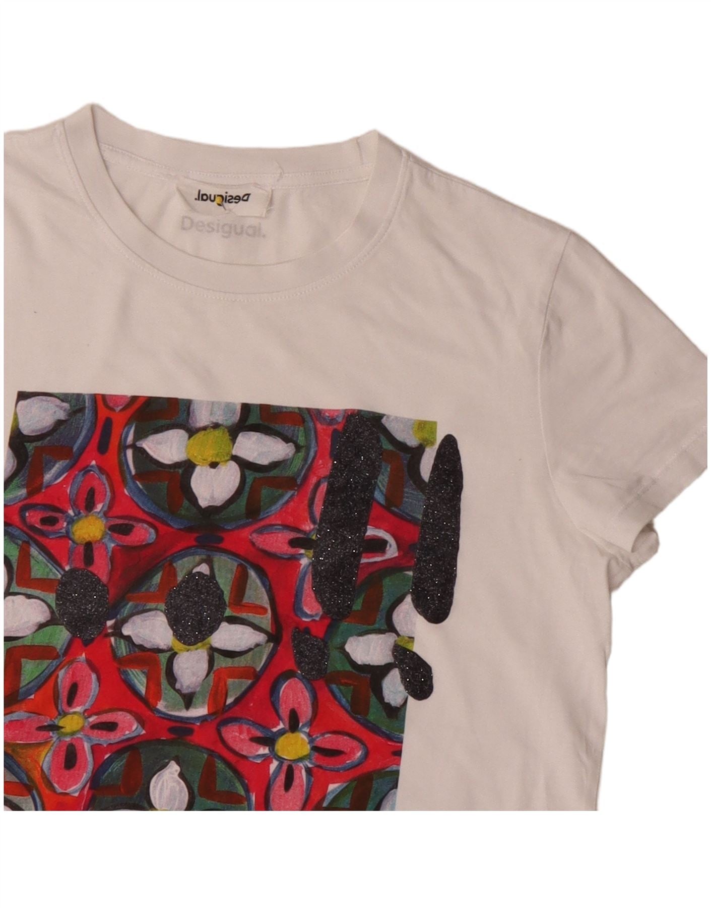 Desigual Womens Graphic T-Shirt Top UK 12 Medium White