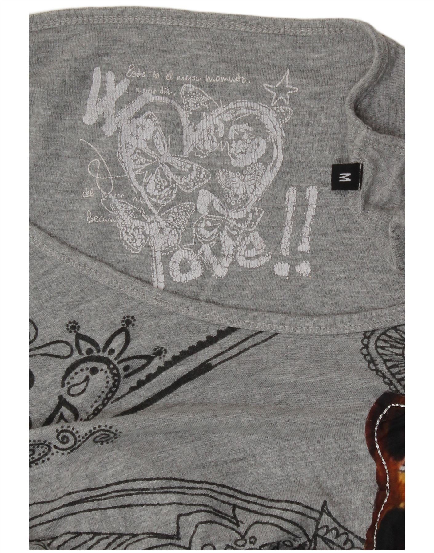 DESIGUAL Womens Graphic T-Shirt Top UK 14 Medium Grey Butterfly