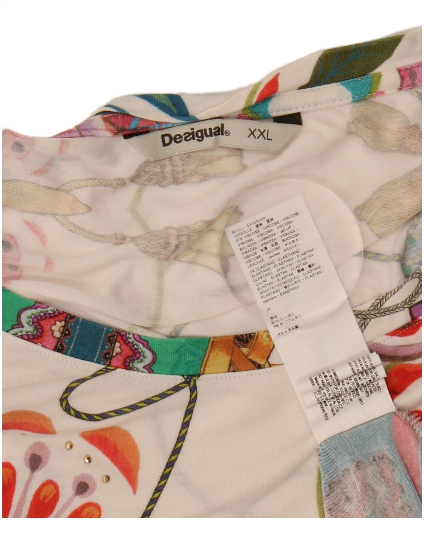 DESIGUAL Womens Graphic T-Shirt Top UK 20 2XL Multicoloured Floral Viscose