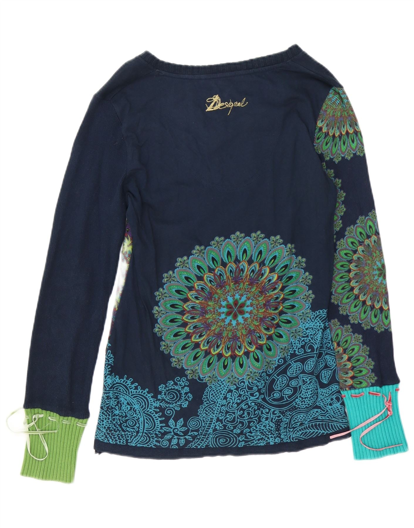 DESIGUAL Womens Graphic Top Long Sleeve UK 14 Large Navy Blue Floral