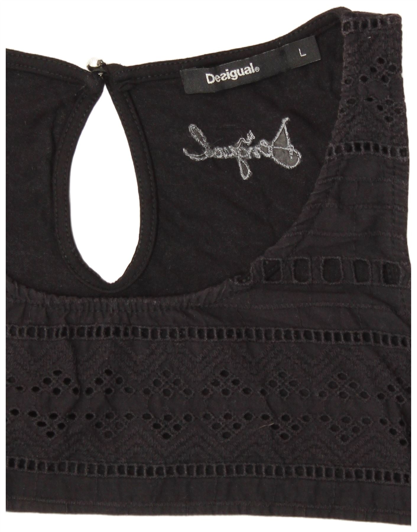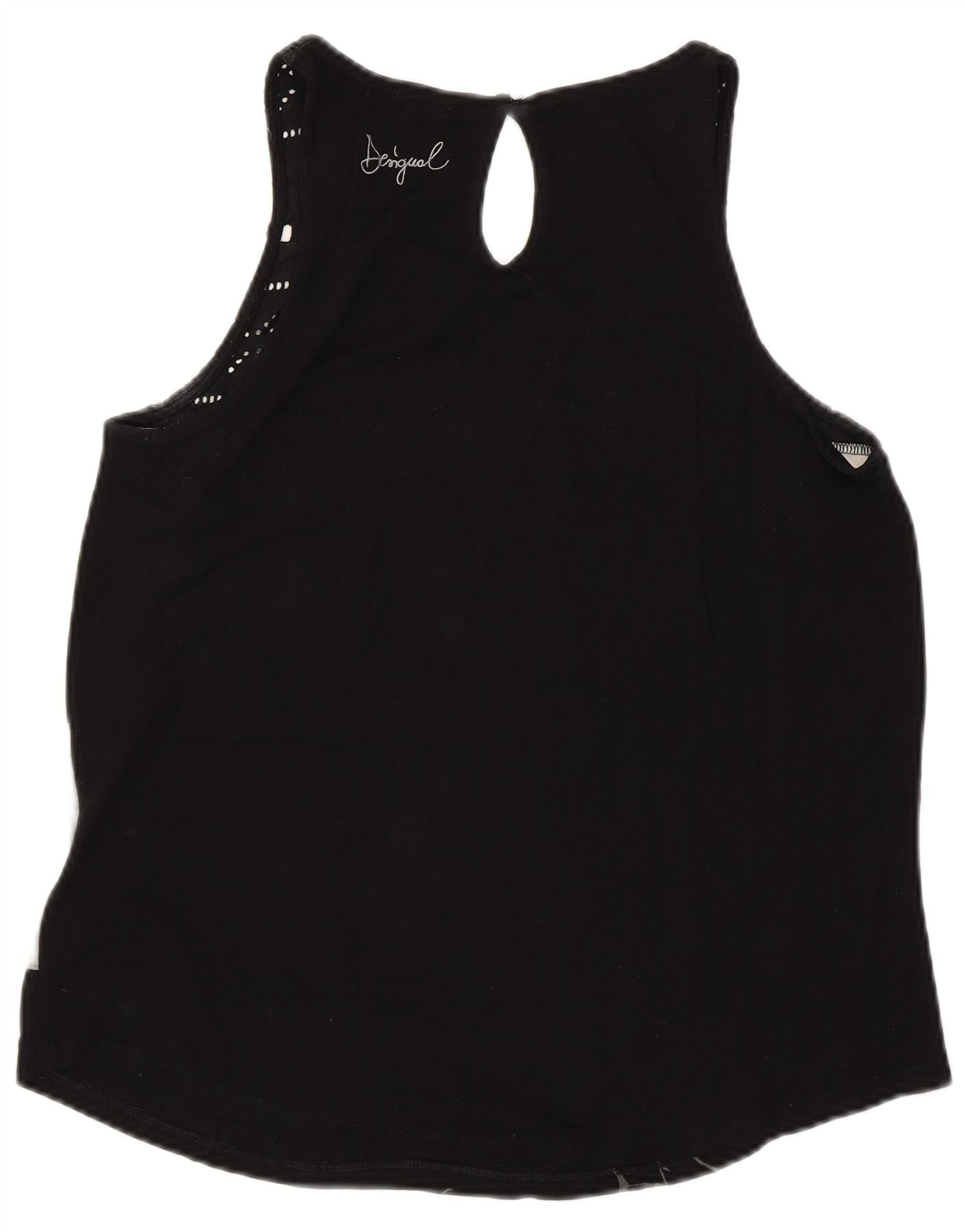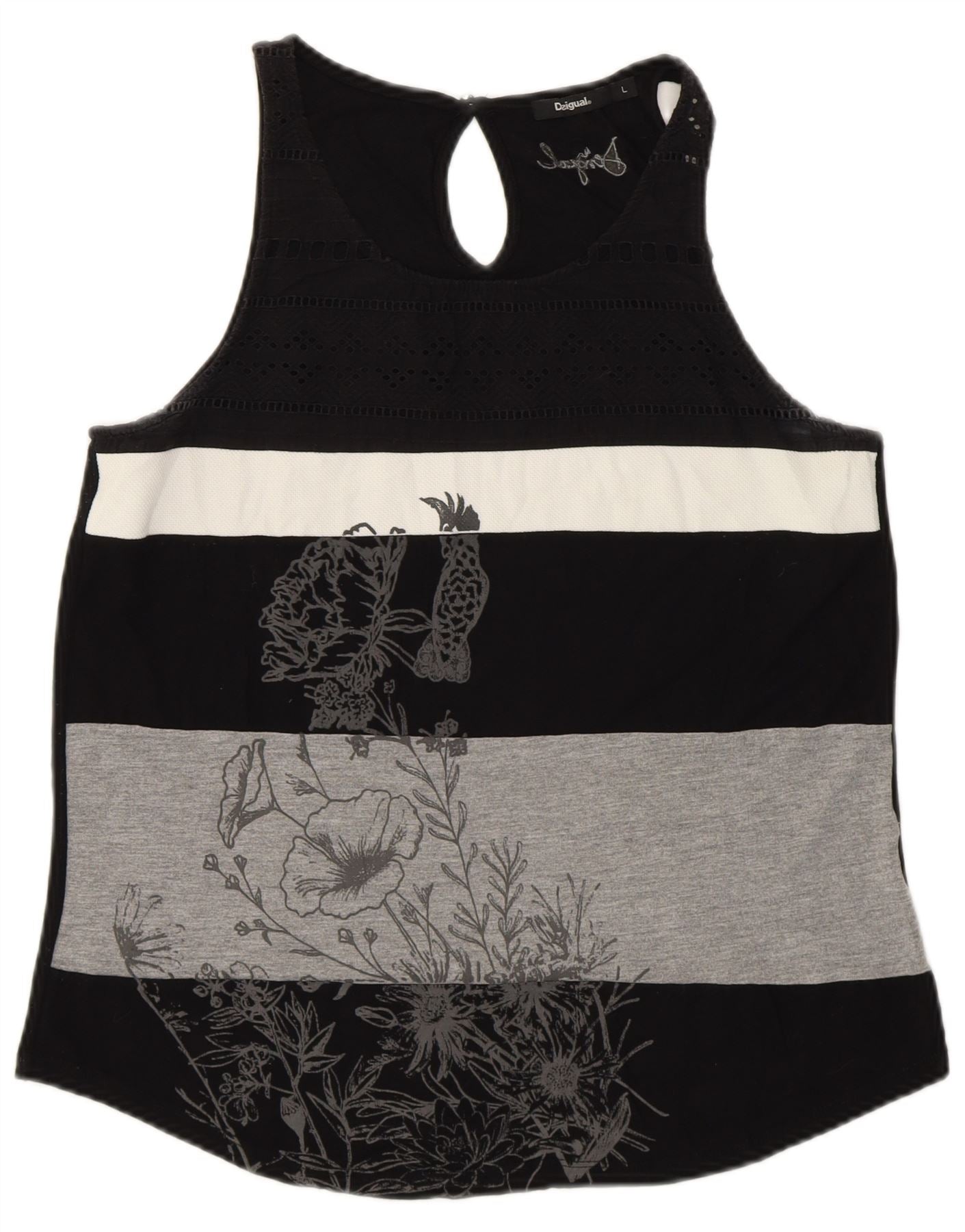 DESIGUAL Womens Graphic Vest Top UK 14 Large Black Striped