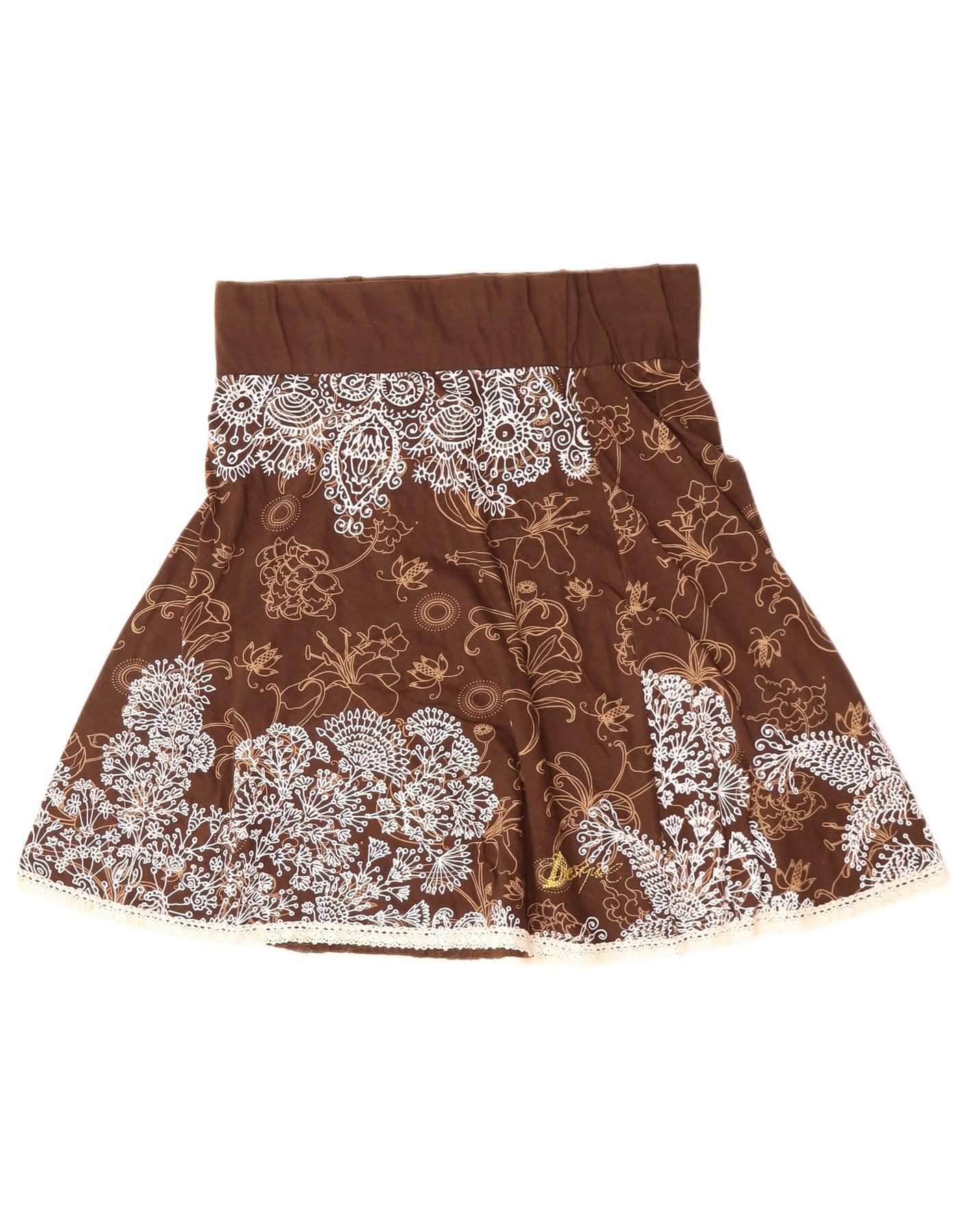 DESIGUAL Womens High Waist A-Line Skirt Large W30 Brown Floral Cotton