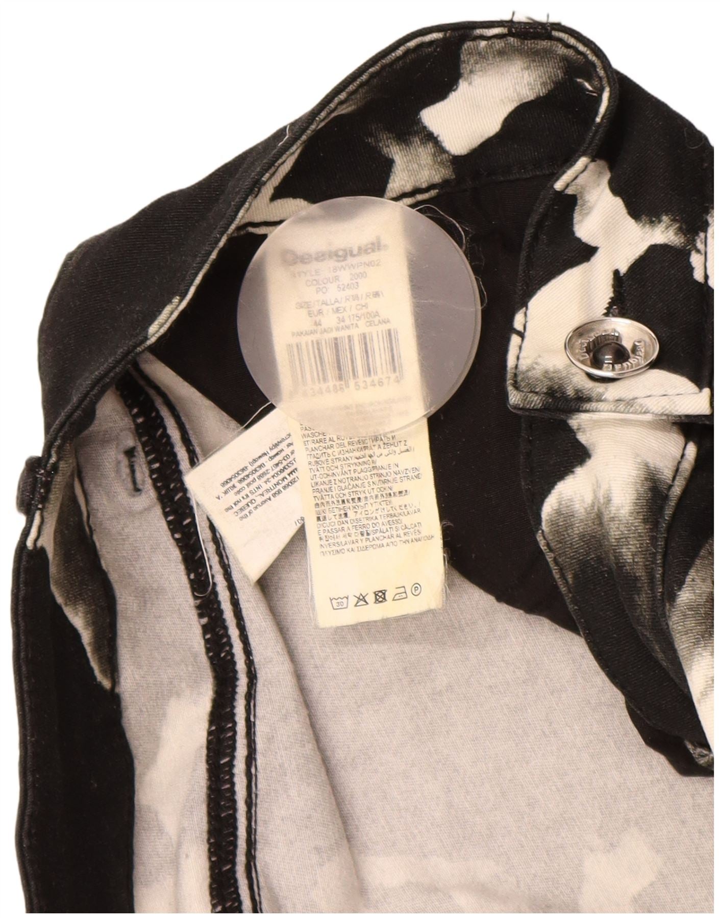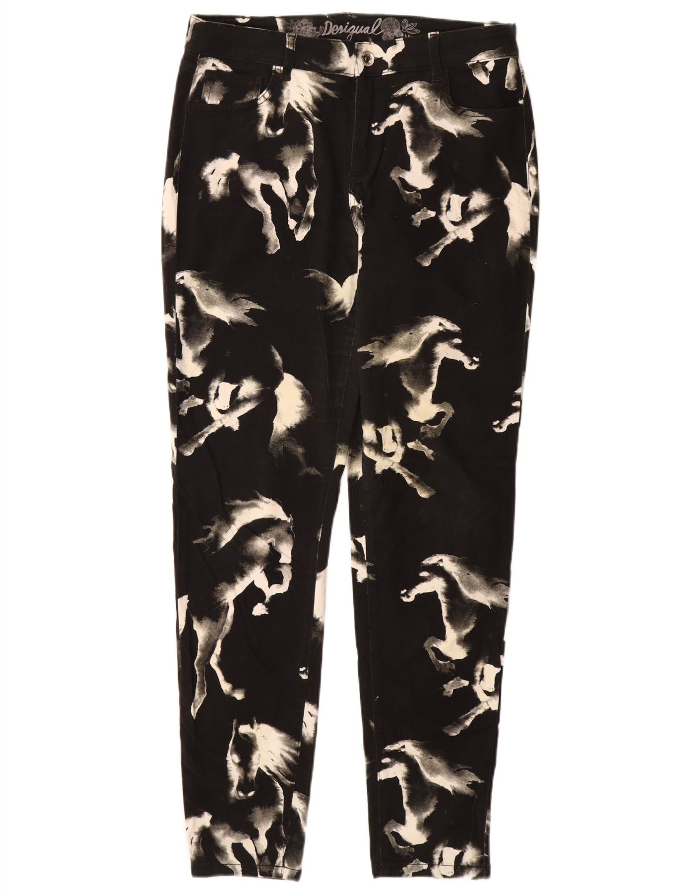 DESIGUAL Womens Skinny Casual Trousers EU 44 XL W34 L31 Black Animal Print