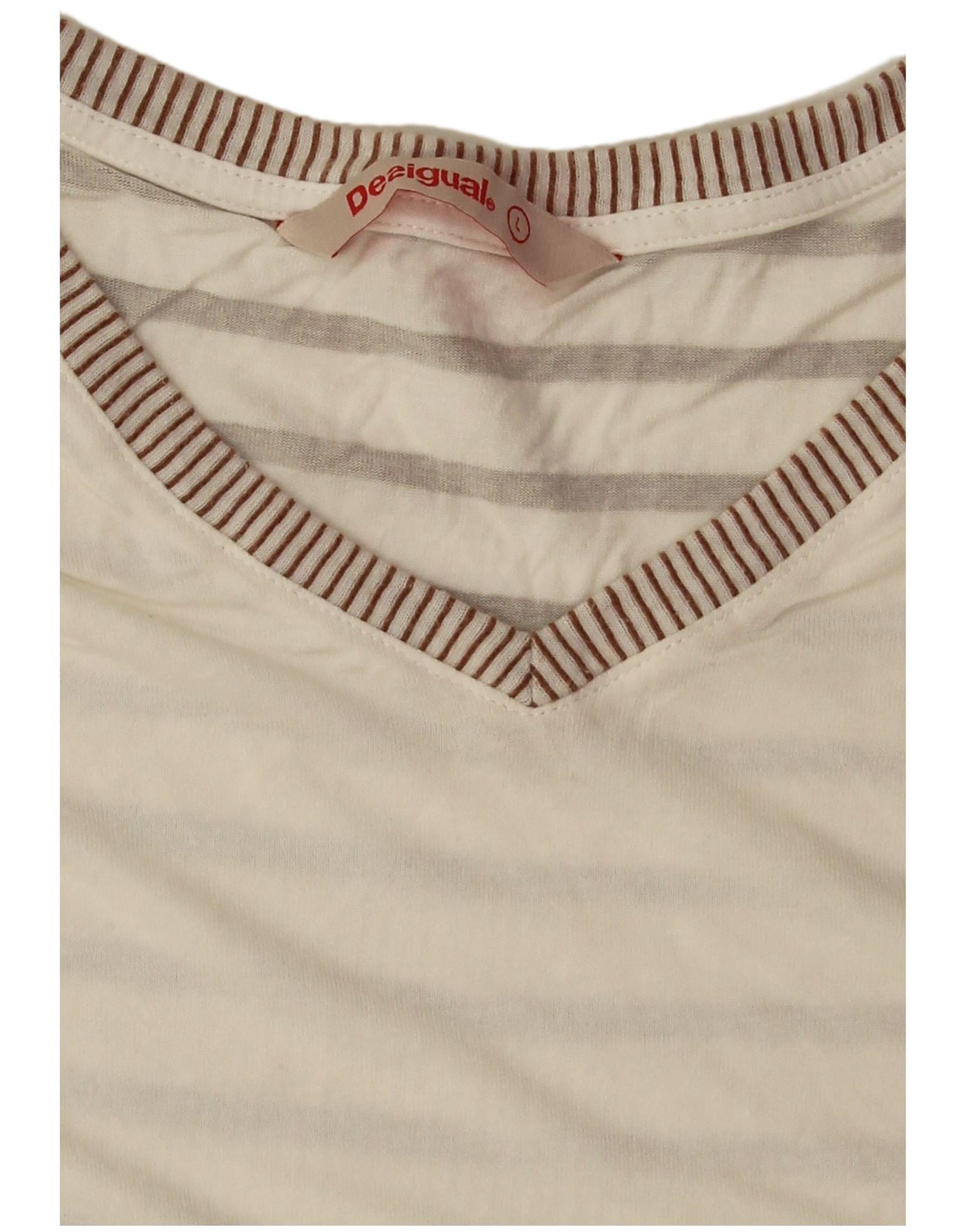 Desigual Womens T-Shirt Top UK 16 Large Off White Floral