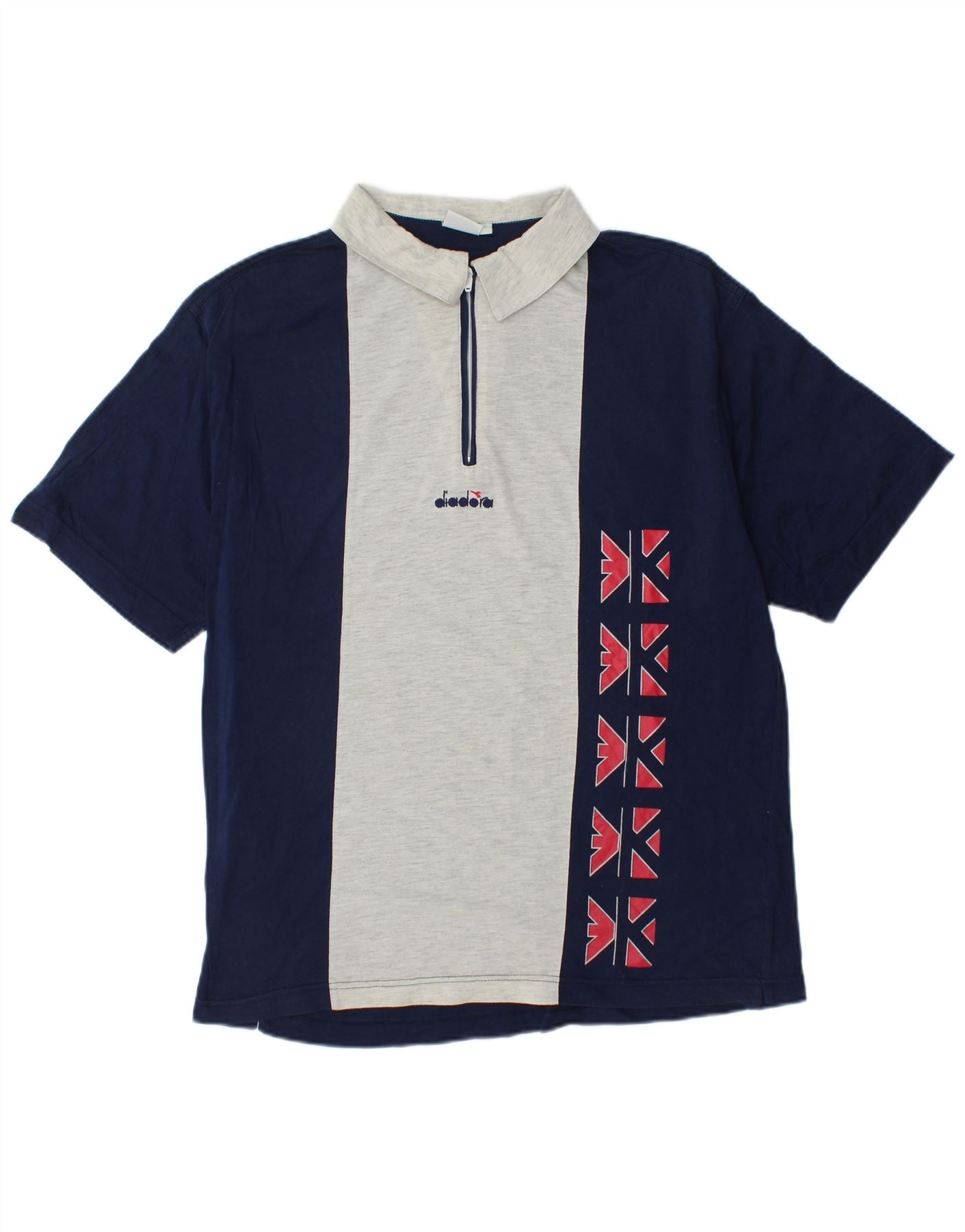 DIADORA Mens Graphic Polo Shirt Large Navy Blue Colourblock Cotton