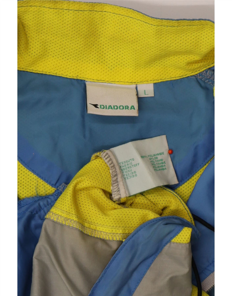 DIADORA Mens Graphic Tracksuit Top Jacket Large Blue Colourblock Polyamide