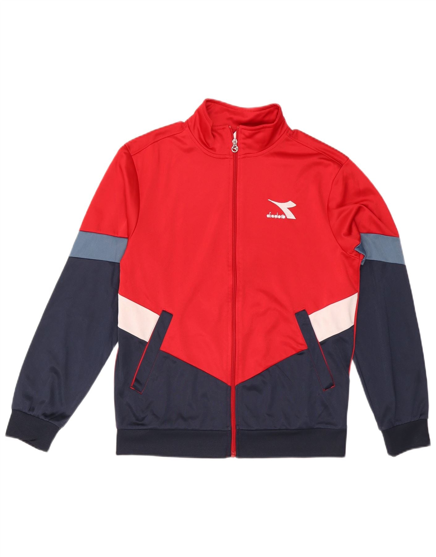 DIADORA Mens Tracksuit Top Jacket Medium Red Colourblock Polyester