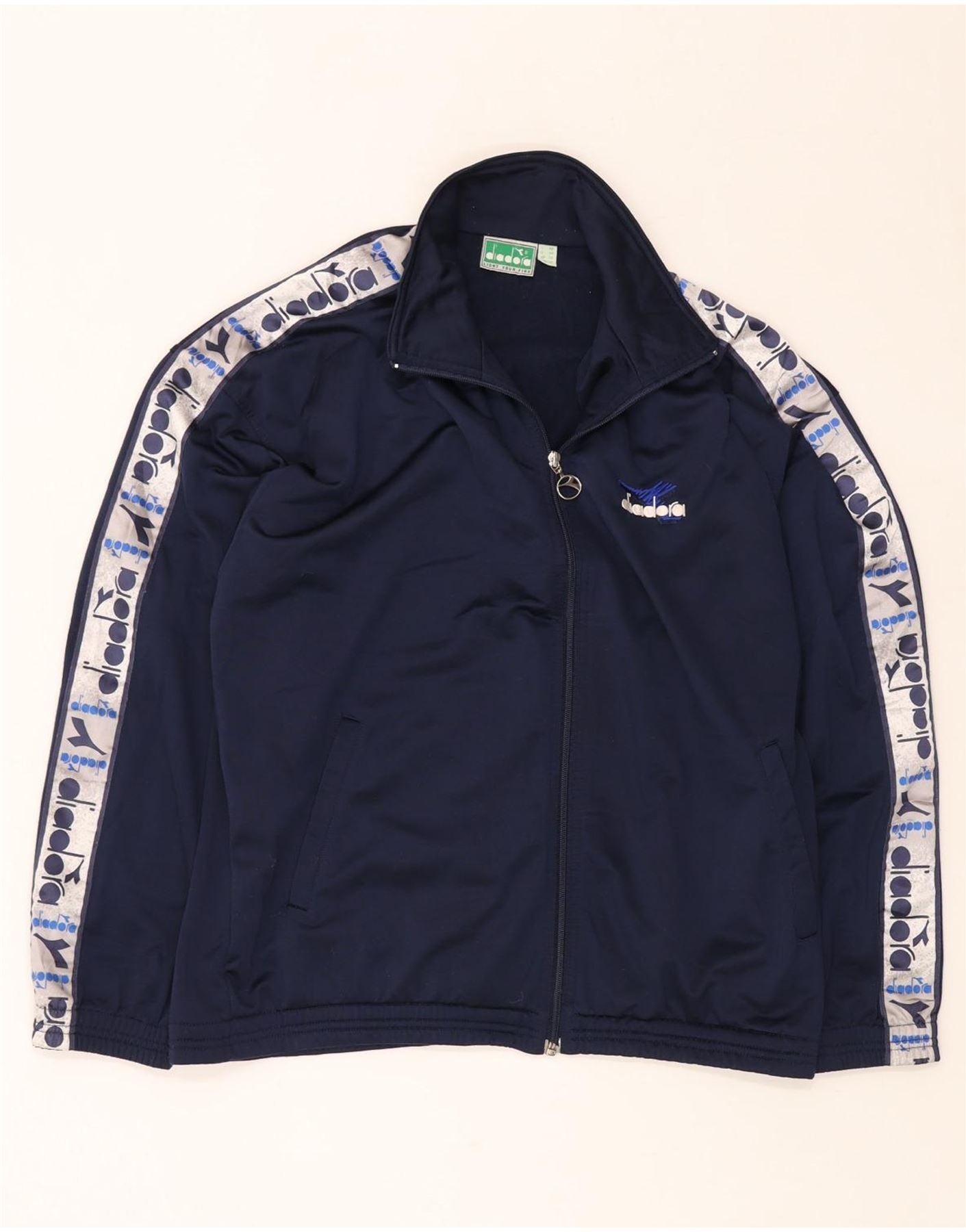DIADORA Mens Tracksuit Top Jacket UK 38 Medium Navy Blue Colourblock