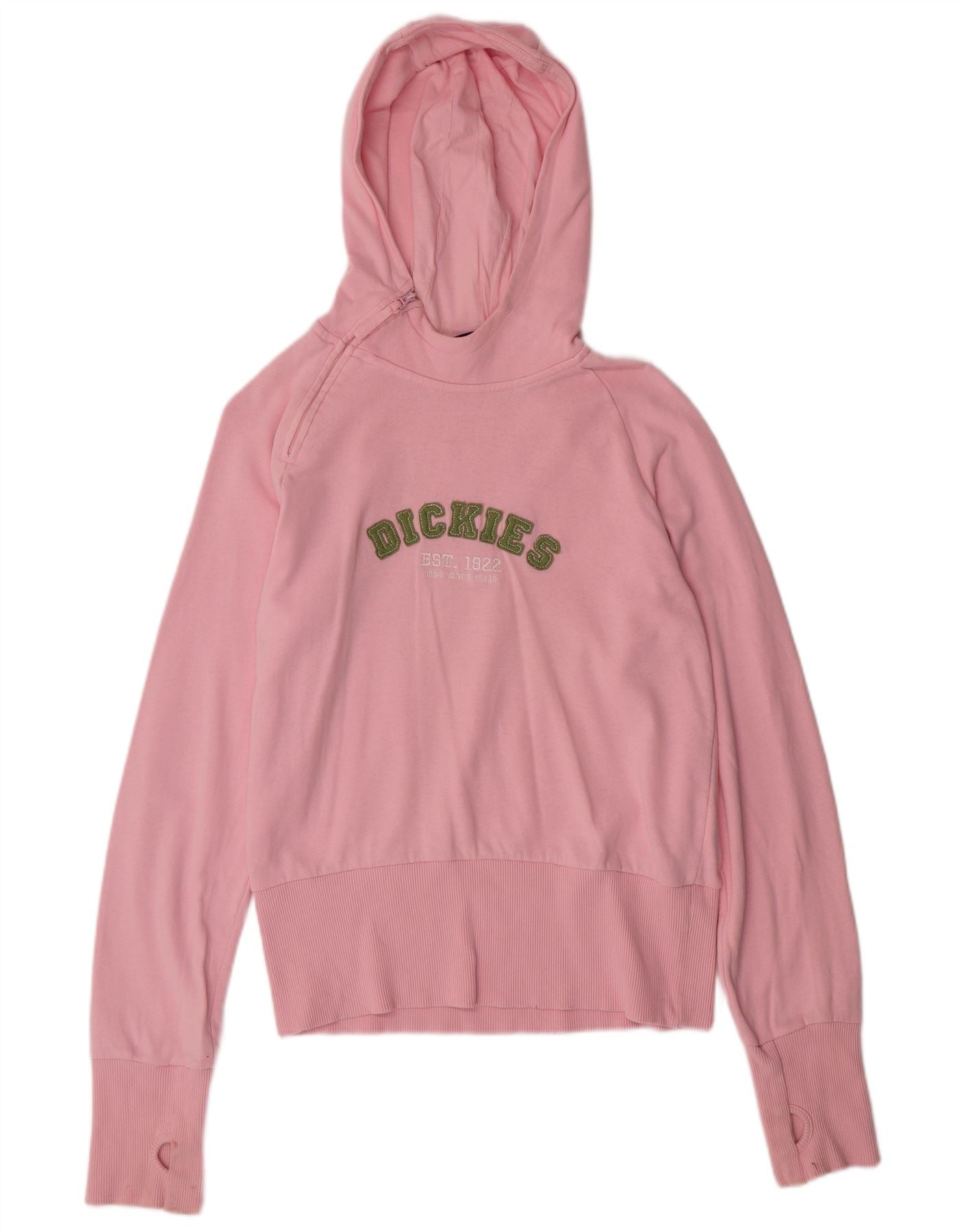 DICKIES Womens Graphic Zip Neck Hoodie Jumper UK 18 XL Pink Cotton