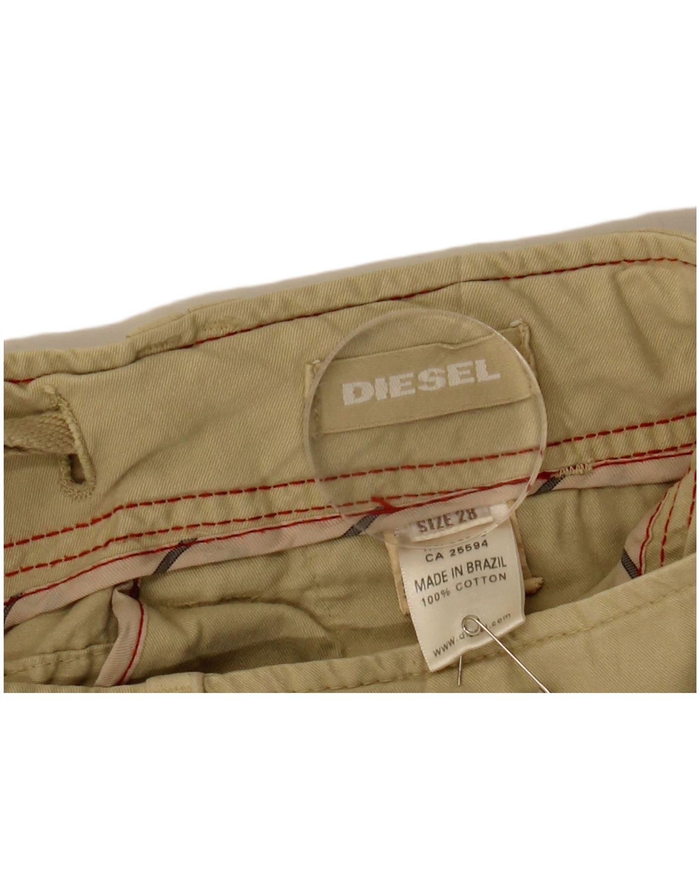 - AI Description: These Diesel mens Cargo Shorts are crafted from durable beige woven cotton. They feature a regular fit and a button closure. The design includes multiple practical pockets. An adjustable waist ensures comfort. The army style is evident in the robust construction and utility pockets. These shorts offer both functionality and a classic aesthetic.