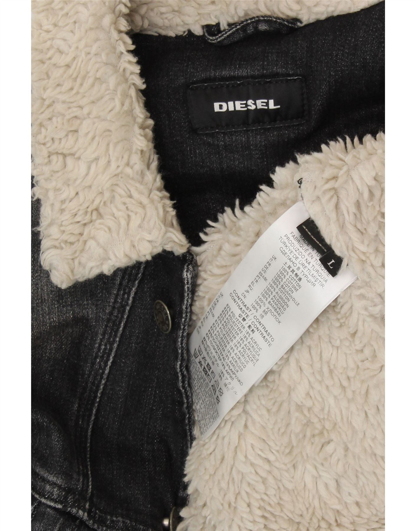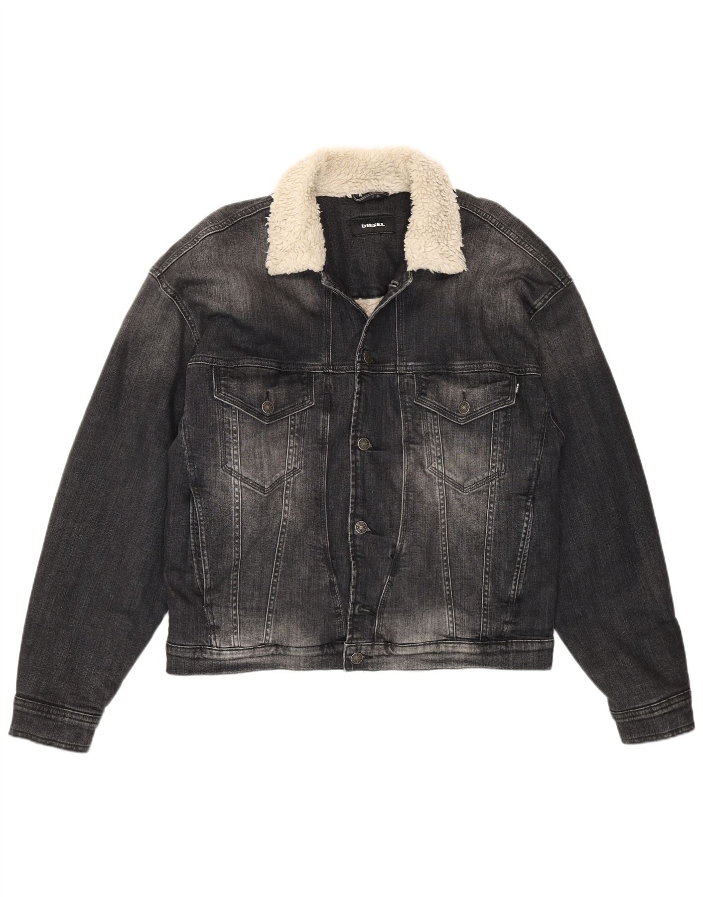 DIESEL Mens Denim Sherpa Jacket UK 40 Large Grey Cotton