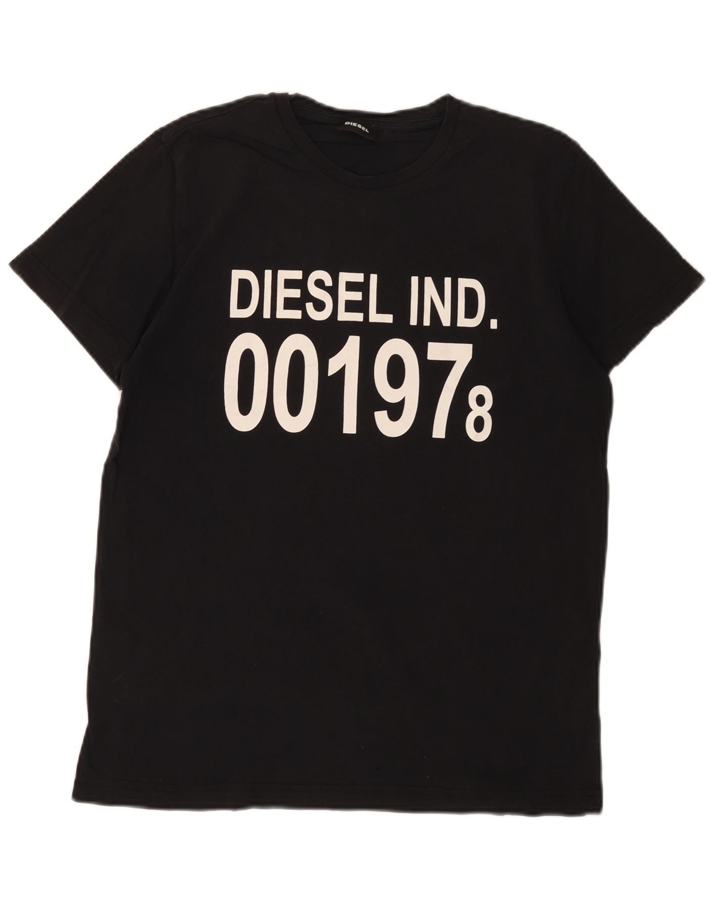 DIESEL Mens Graphic T-Shirt Top Medium Black Cotton