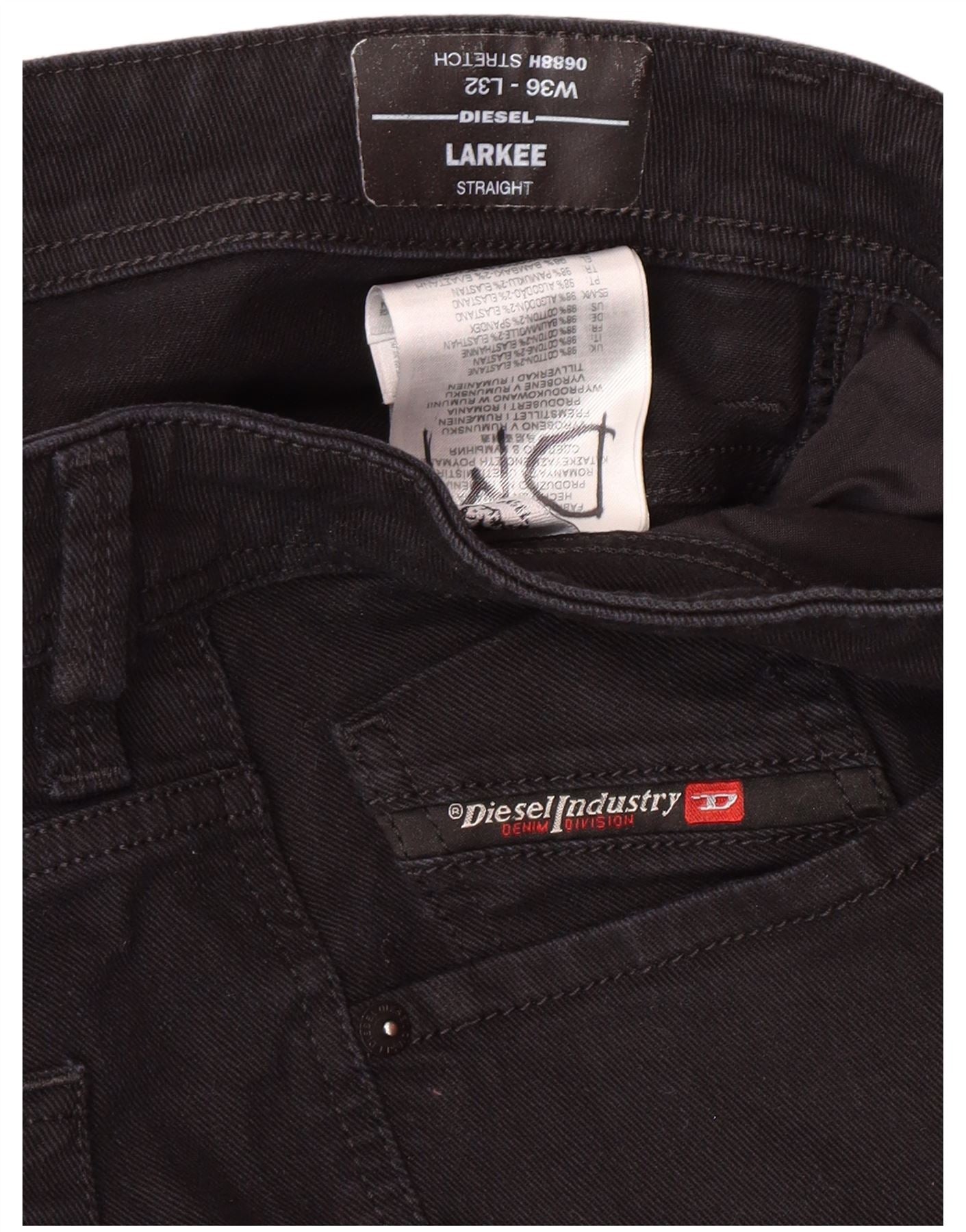 DIESEL Mens Larkee Straight Jeans W36 L32 Black Cotton