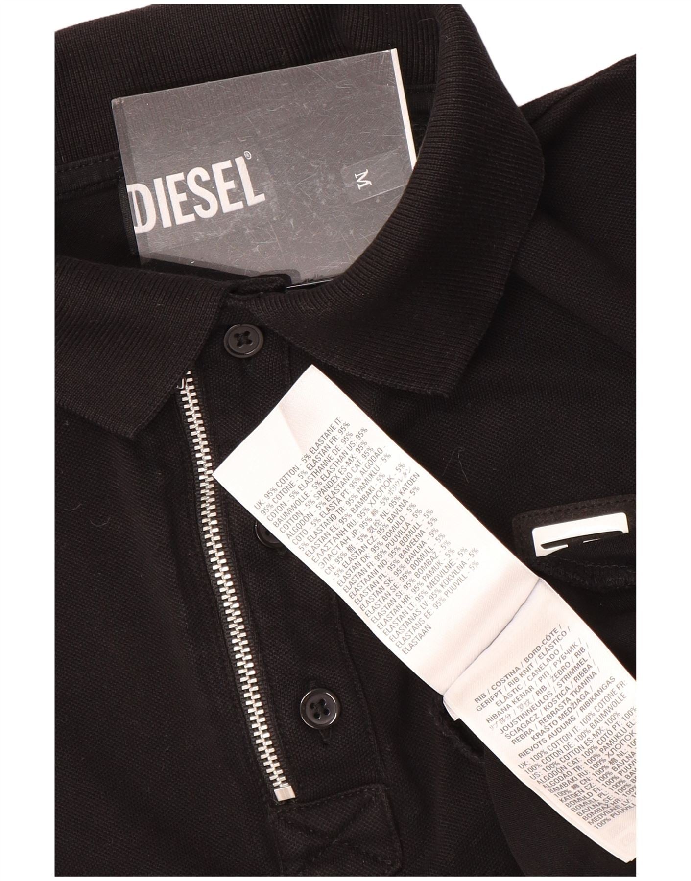 DIESEL Mens Polo Shirt Medium Black Cotton