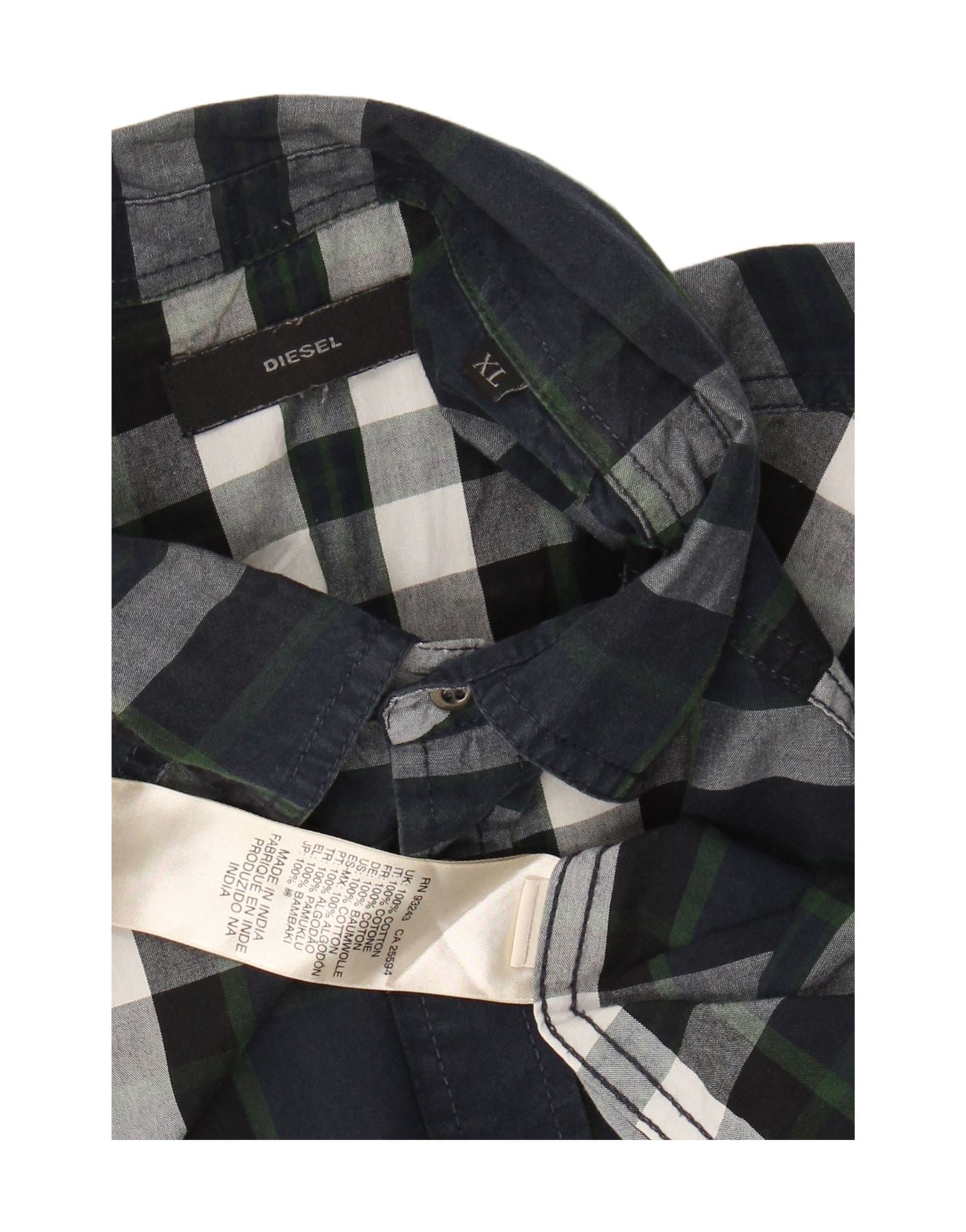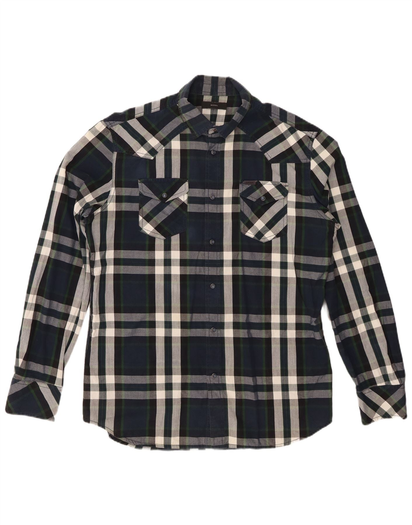 DIESEL Mens Shirt XL Navy Blue Check Cotton