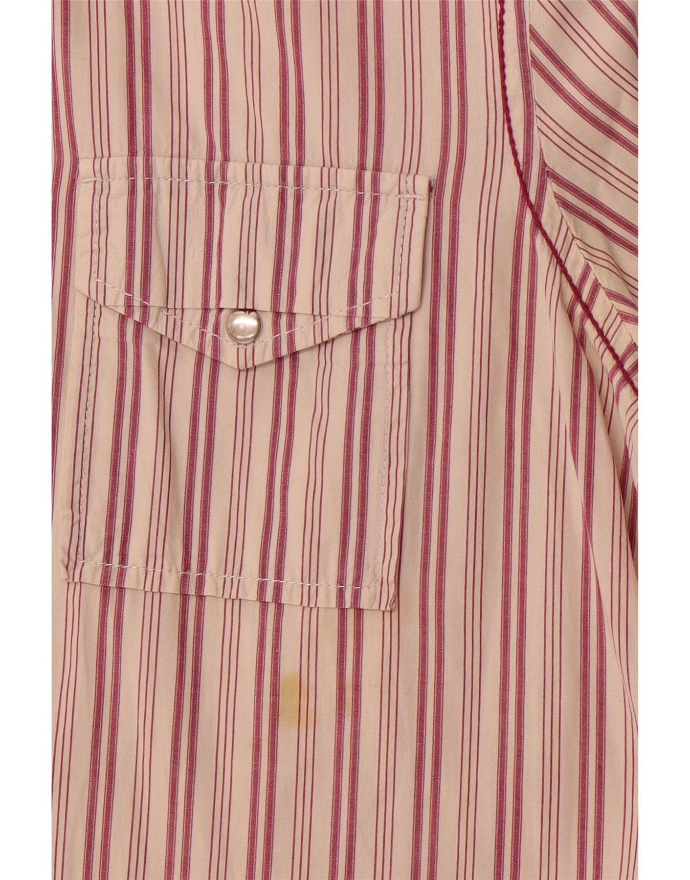Diesel Mens Short Sleeve Shirt Medium Red Striped Cotton