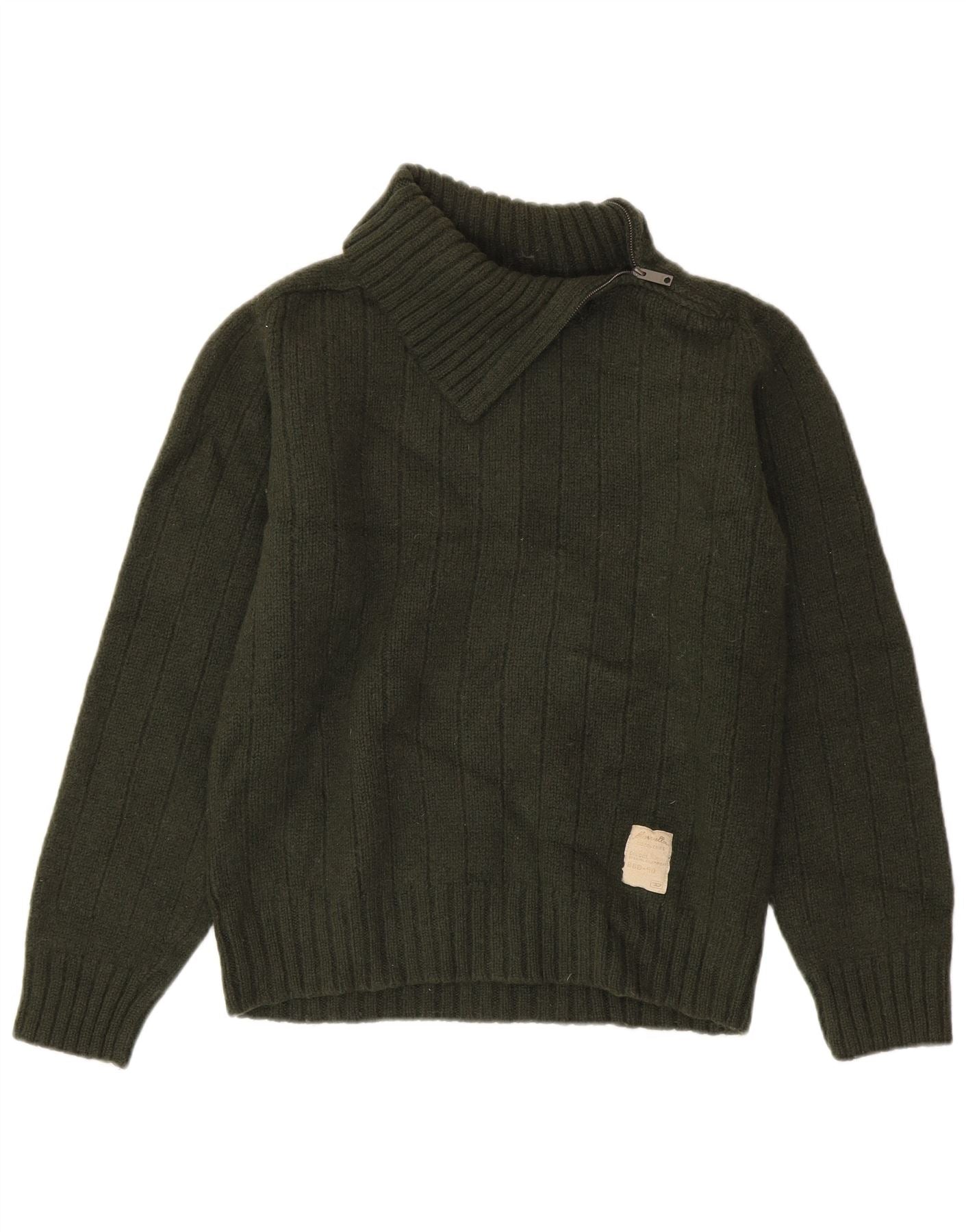 DIESEL Womens Zip Neck Jumper Sweater UK 18 XL Khaki Wool