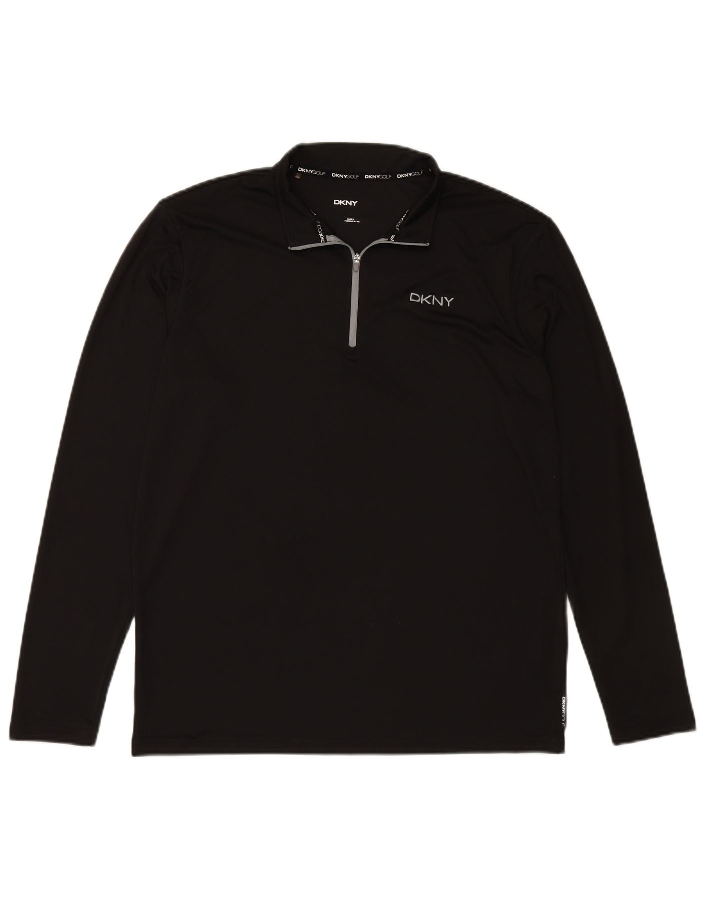 DKNY Mens Zip Neck Pullover Tracksuit Top Large Black Polyester