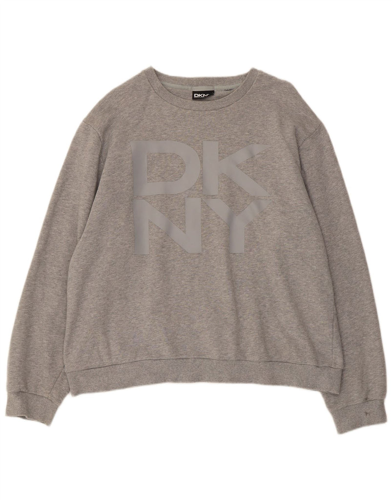 DKNY Womens Donna Karan Graphic Sweatshirt Jumper UK 18 XL Grey Cotton