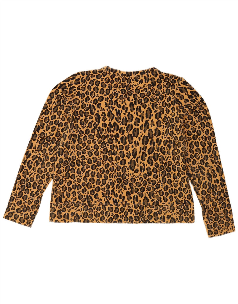 DKNY Womens Graphic Top Long Sleeve UK 14 Medium Brown Animal Print Cotton