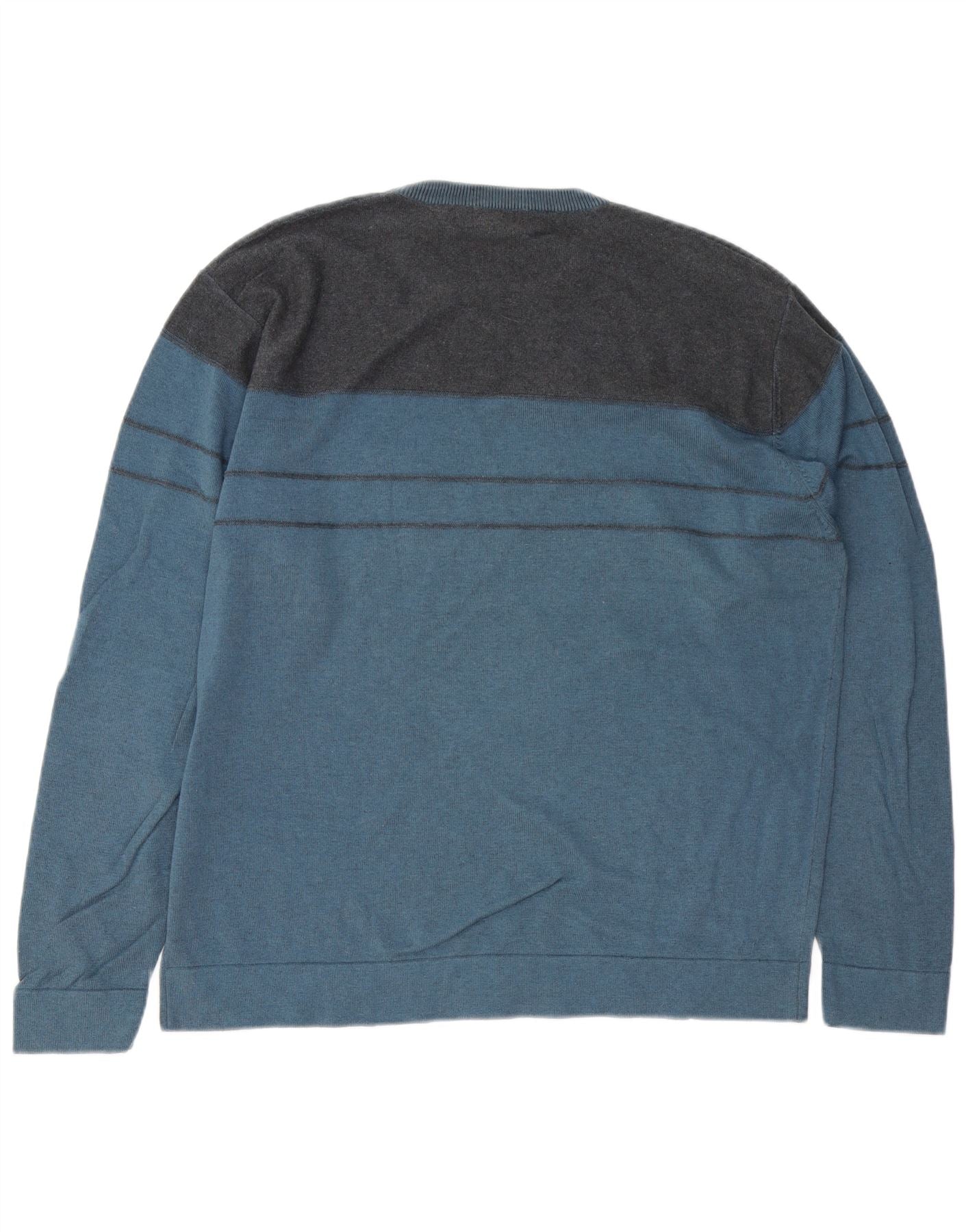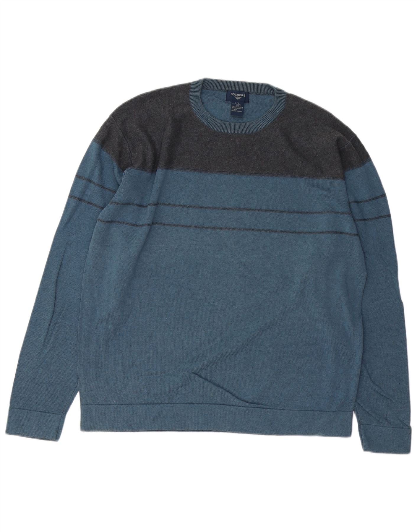 DOCKERS Mens Crew Neck Jumper Sweater Large Blue Colourblock Cotton