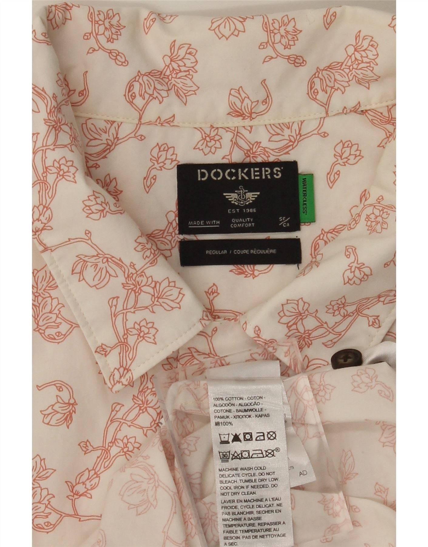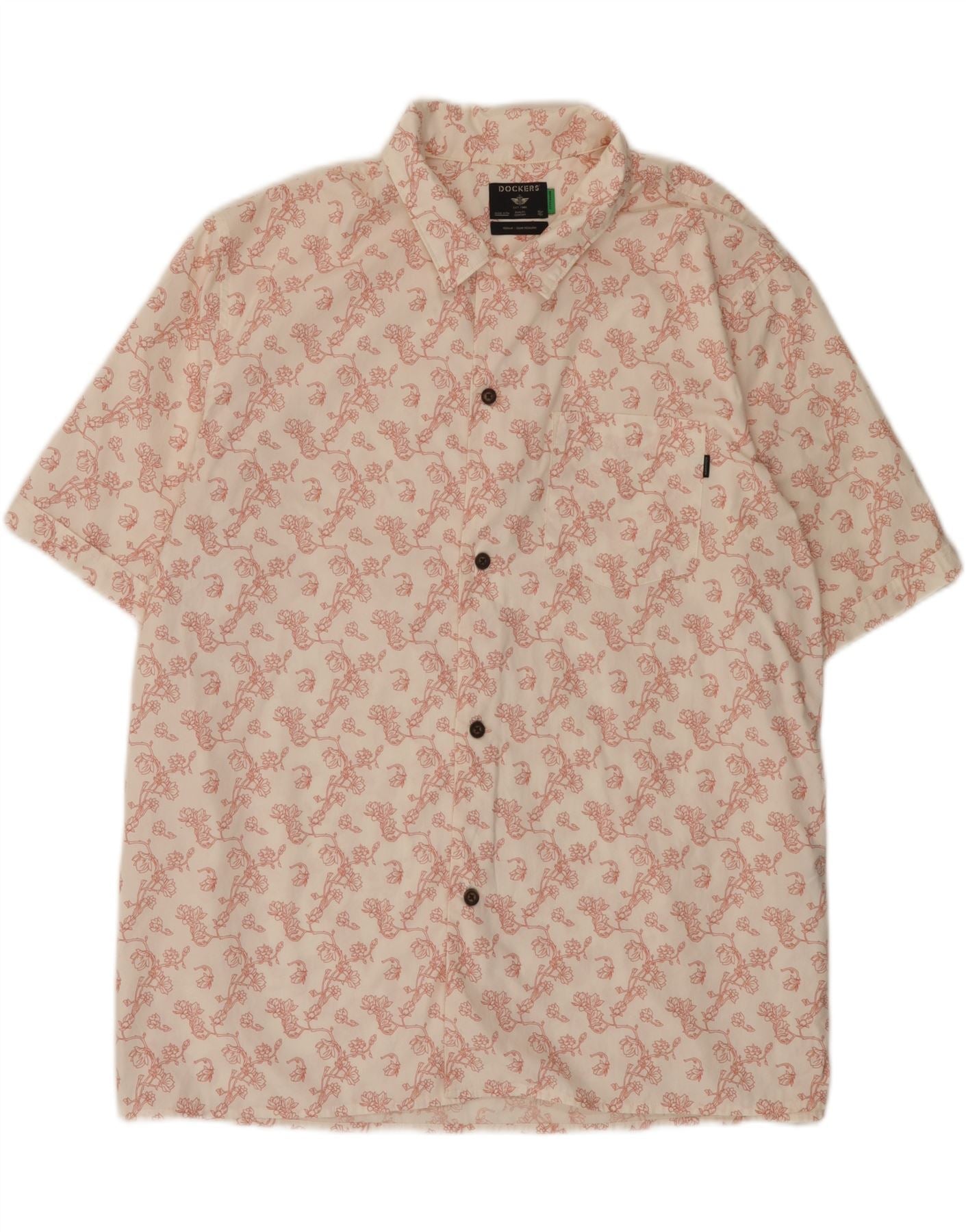 DOCKERS Mens Regular Fit Short Sleeve Shirt XL White Floral Cotton