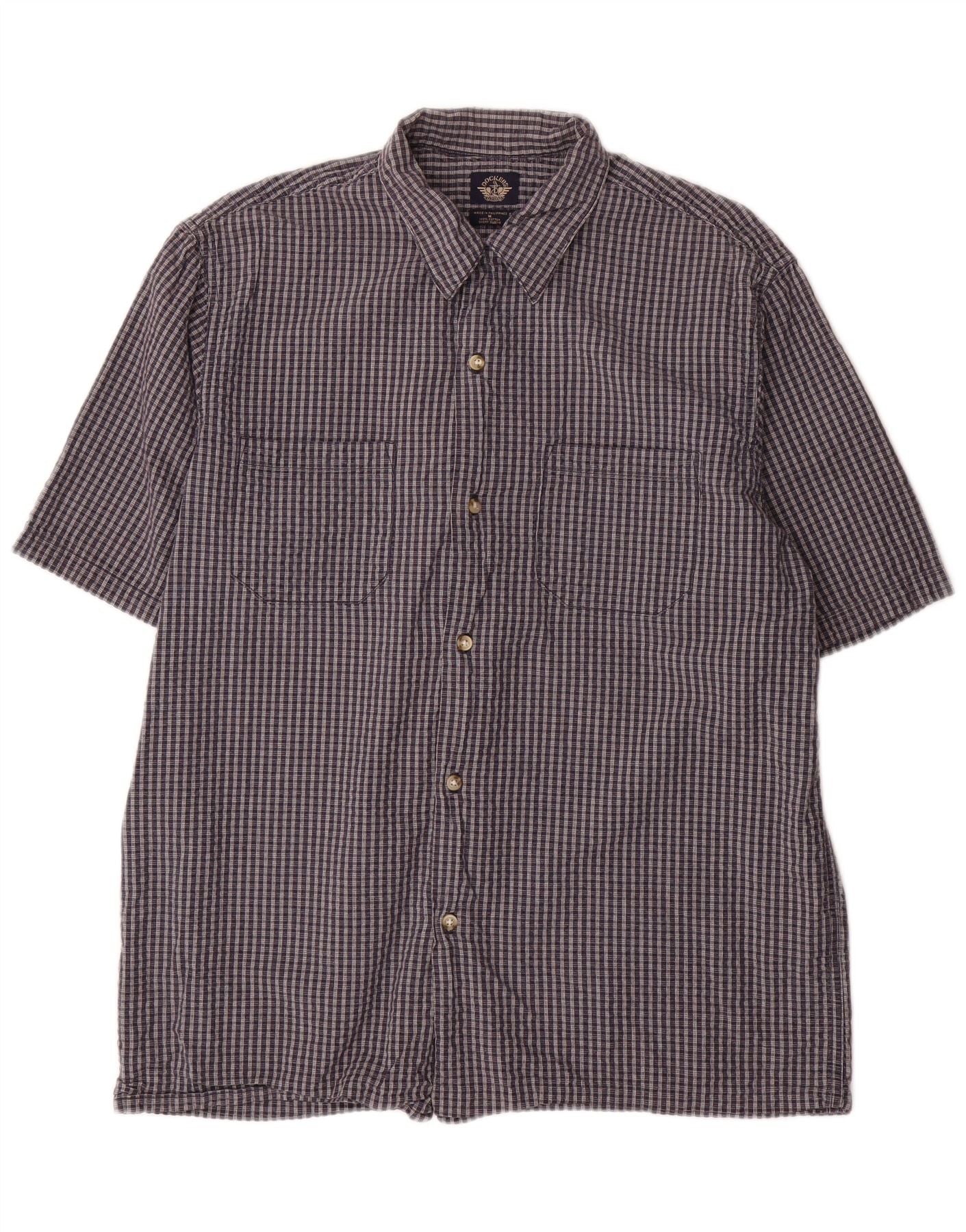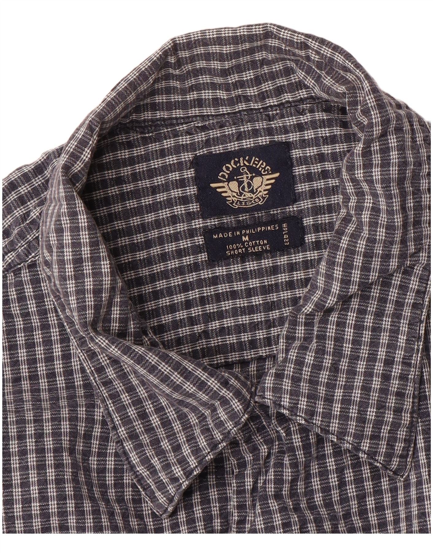 DOCKERS Mens Short Sleeve Shirt Medium Navy Blue Check Cotton