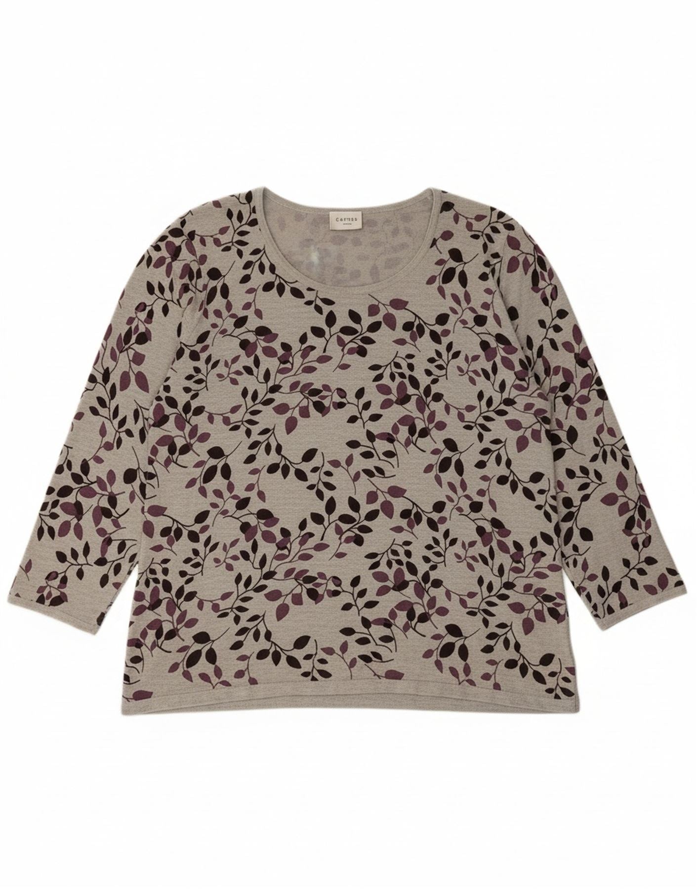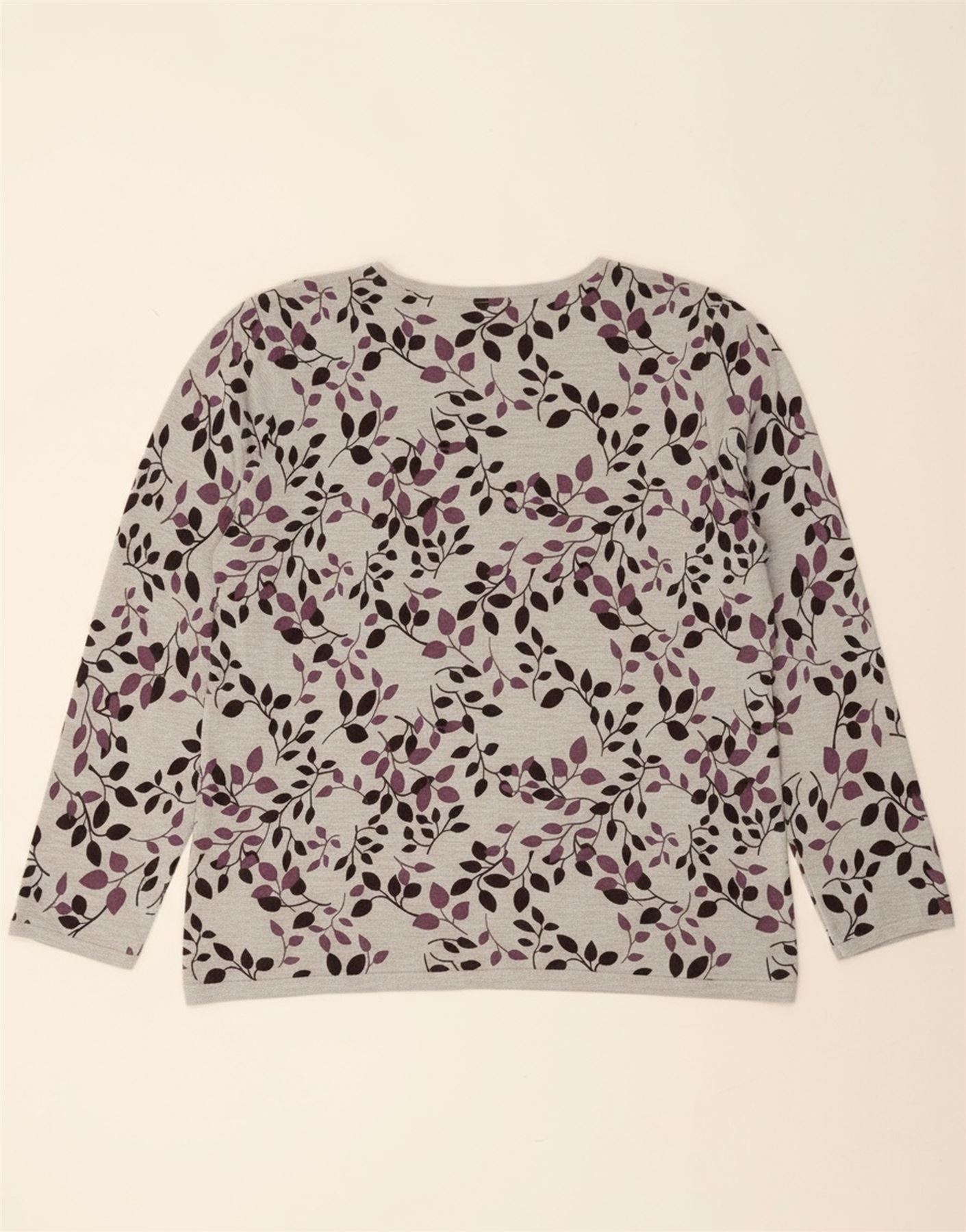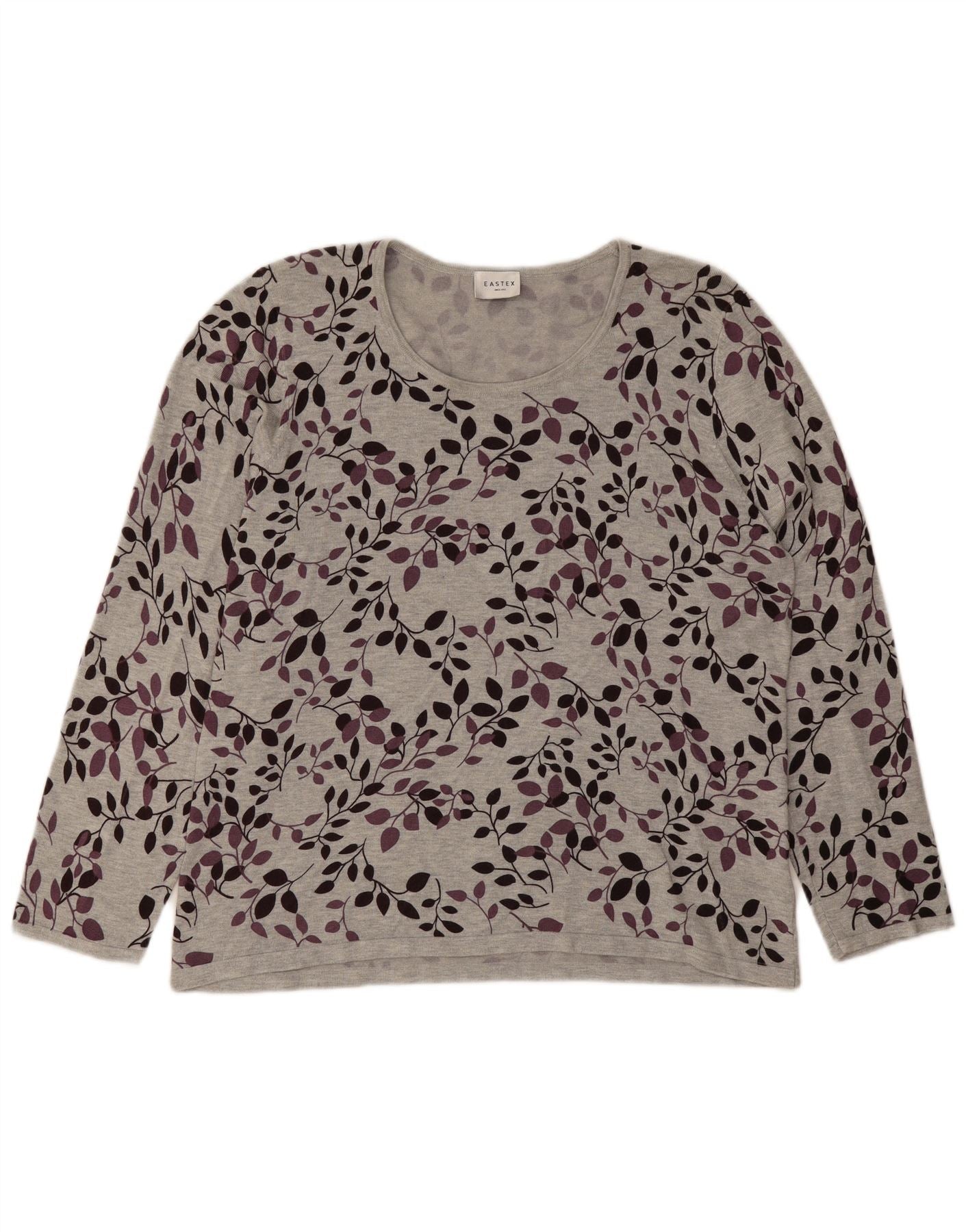 EASTEX Womens Top Long Sleeve UK 18 XL Grey Floral Viscose