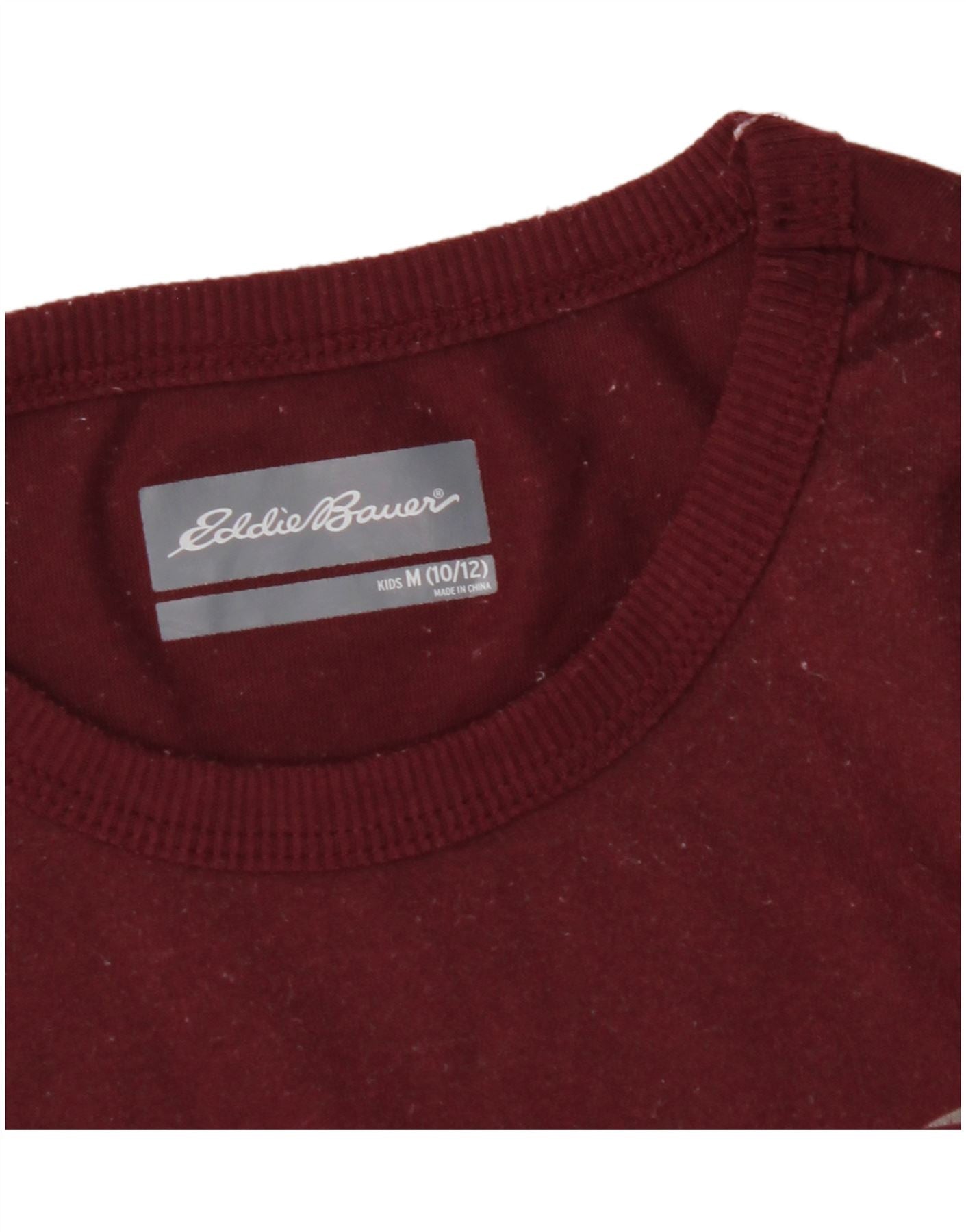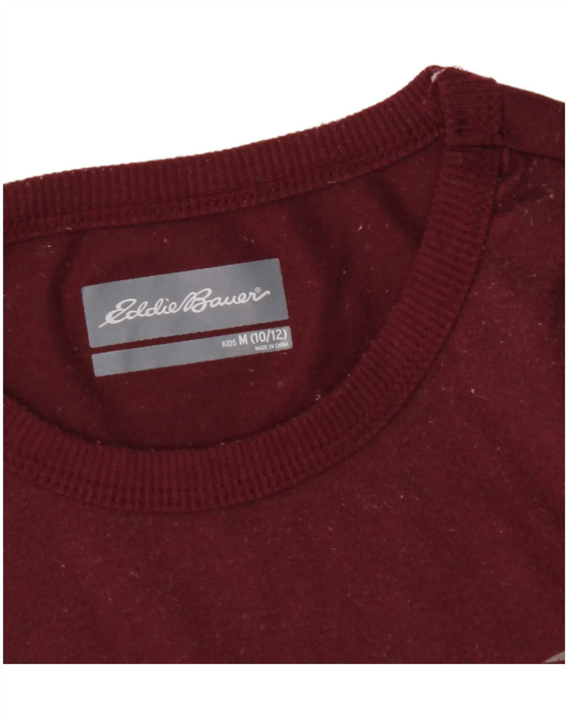 EDDIE BAUER Boys Graphic Top Long Sleeve 10-11 Years Medium Maroon Striped