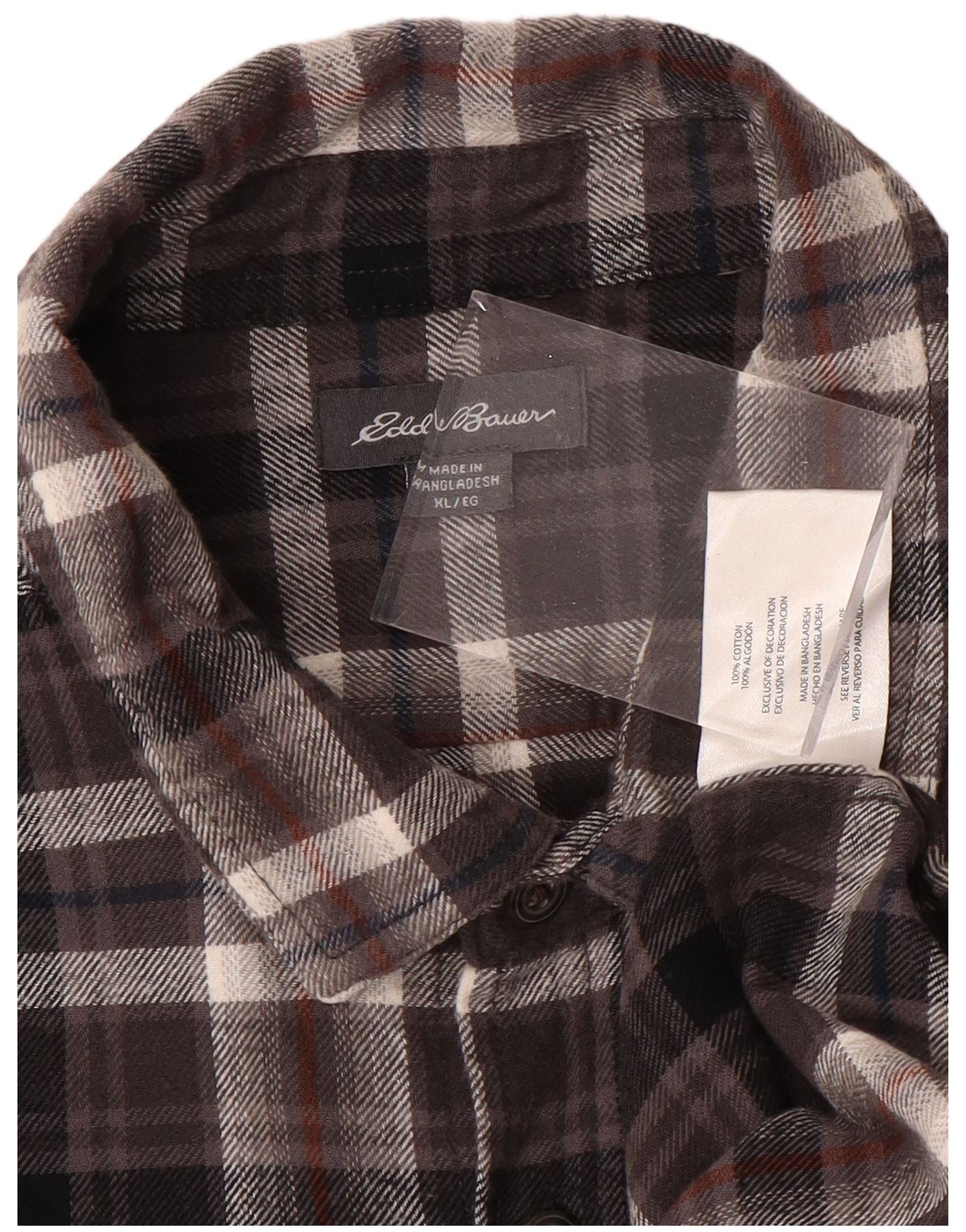 EDDIE BAUER Mens Checked Flannel Shirt XL Brown Check Cotton