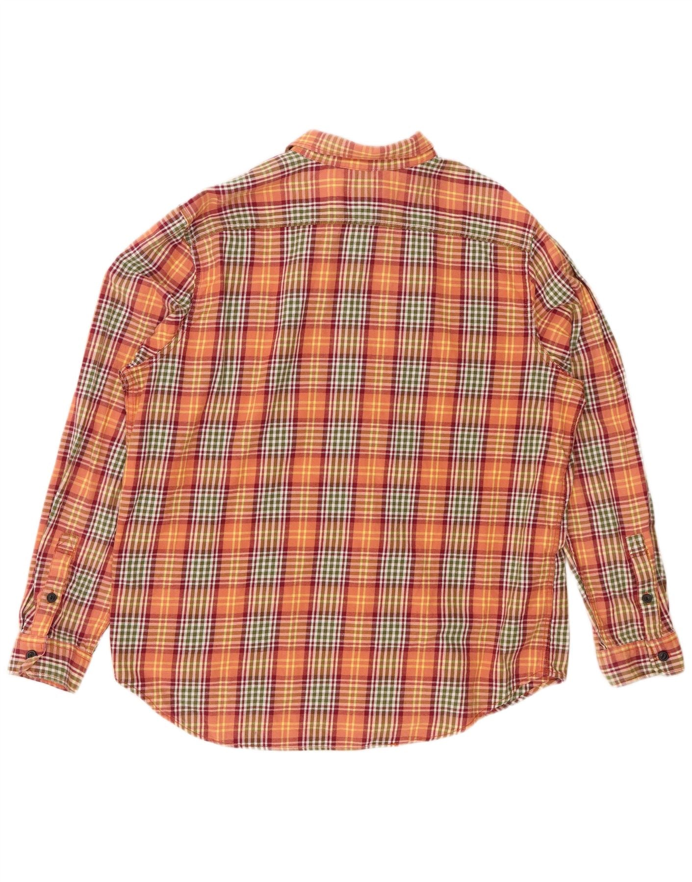 EDDIE BAUER Mens Classic Fit Flannel Shirt 2XL Orange Check Cotton