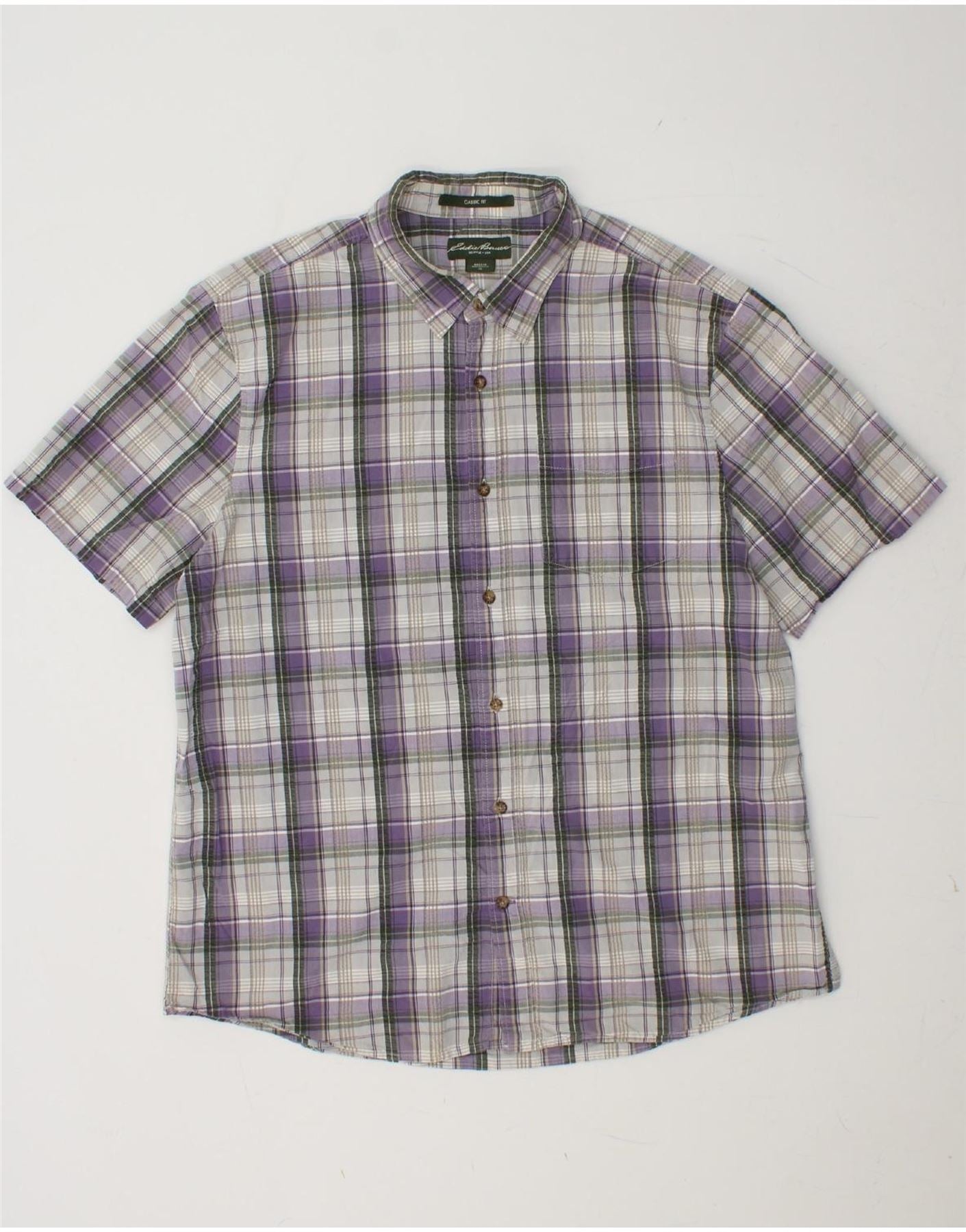 EDDIE BAUER Mens Classic Fit Short Sleeve Shirt XL Purple Check