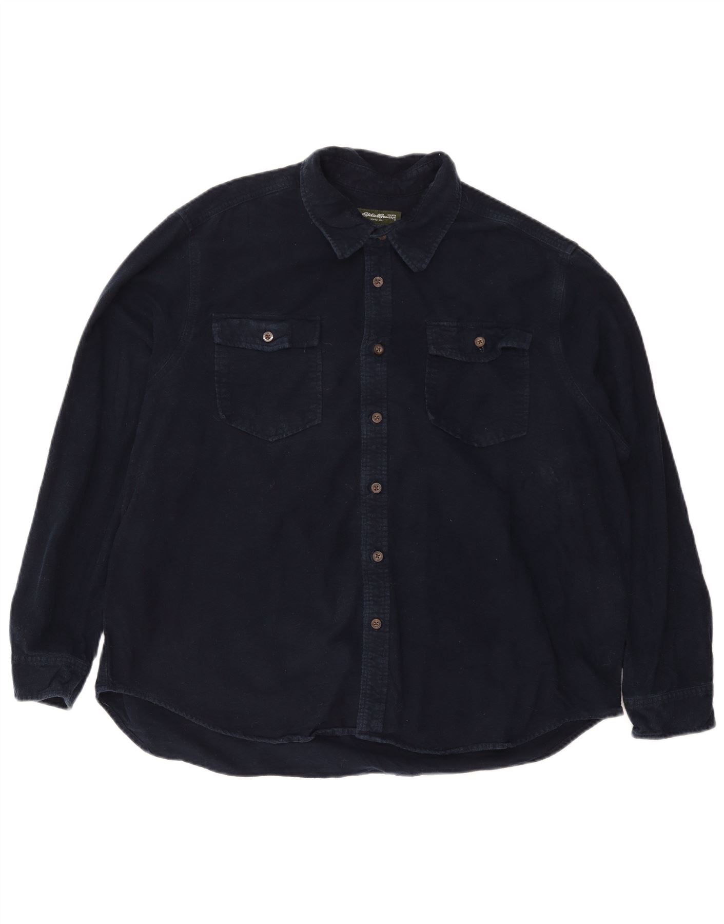 EDDIE BAUER Mens Flannel Shirt 2XL Navy Blue Cotton