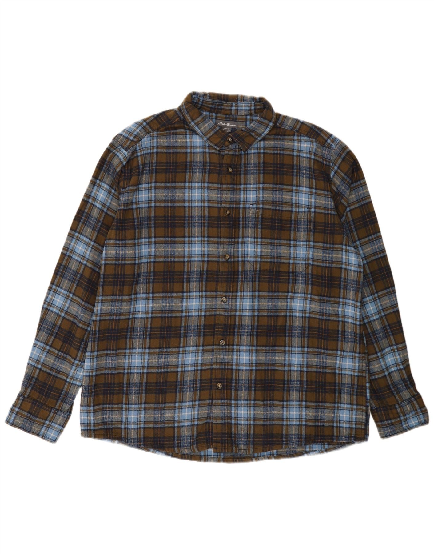 EDDIE BAUER Mens Flannel Shirt XL Khaki Check Cotton