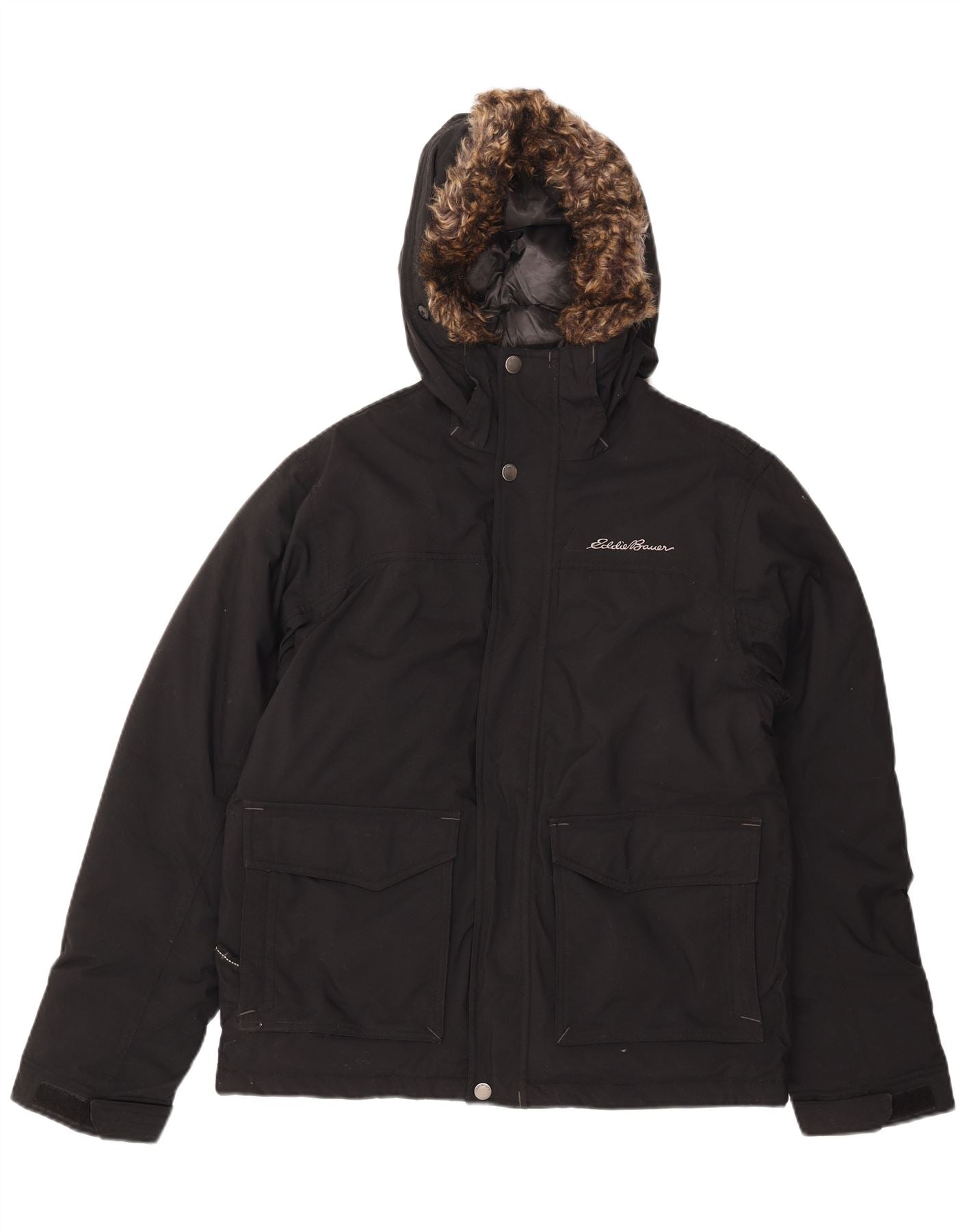 EDDIE BAUER Mens Hooded Windbreaker Jacket UK 38 Medium Black Nylon