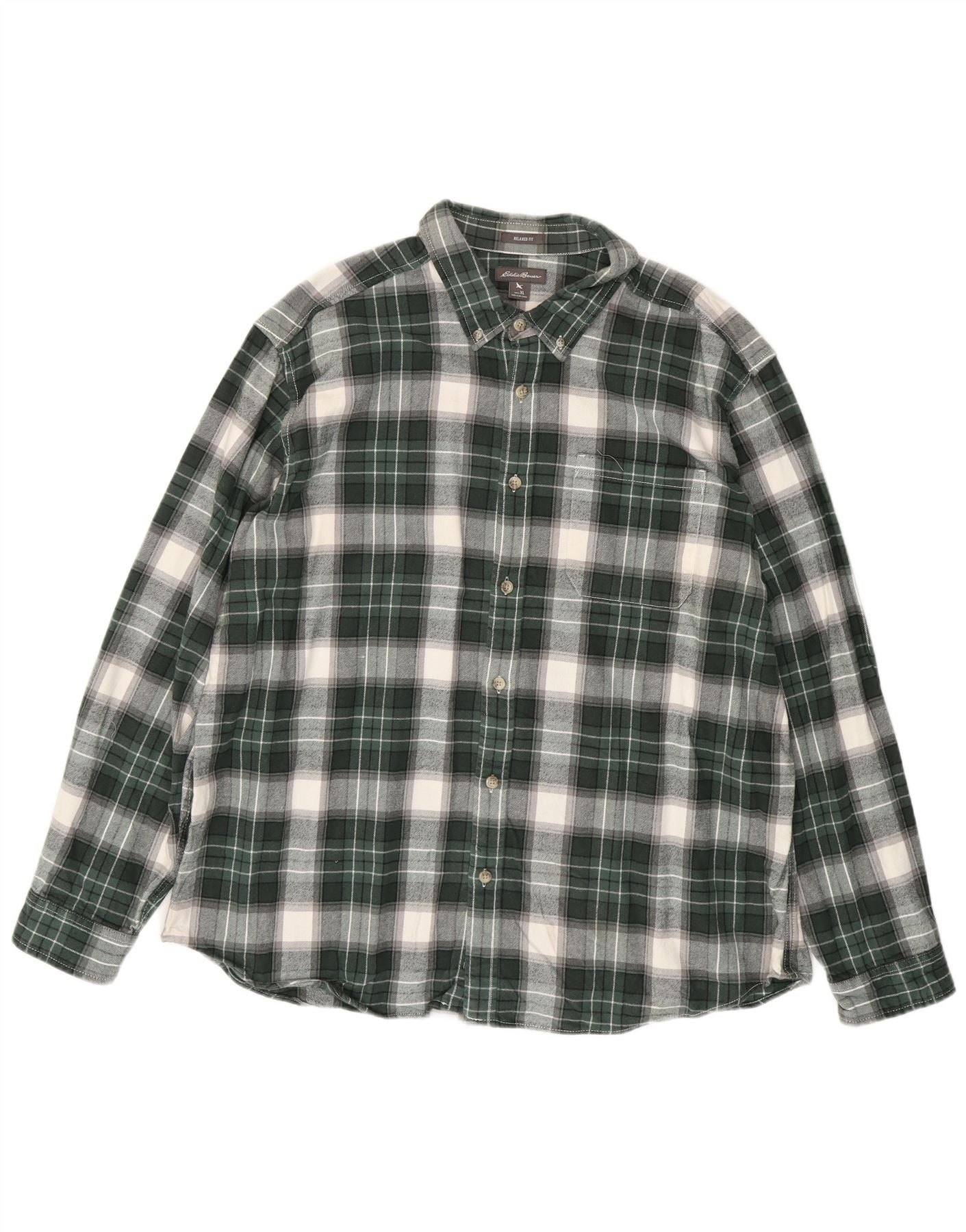 EDDIE BAUER Mens Relaxed Fit Flannel Shirt XL Green Check Cotton