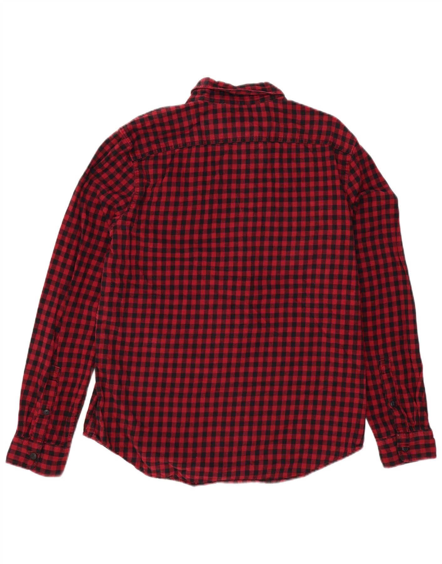EDDIE BAUER Mens Tall Flannel Shirt Large Red Gingham Cotton